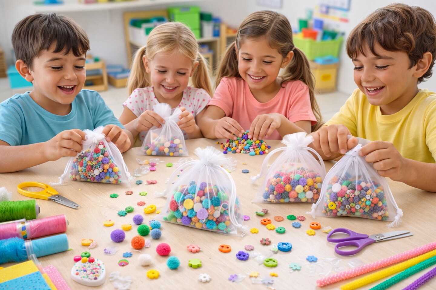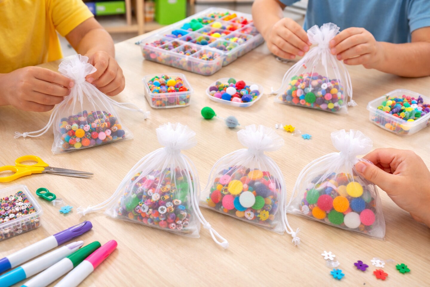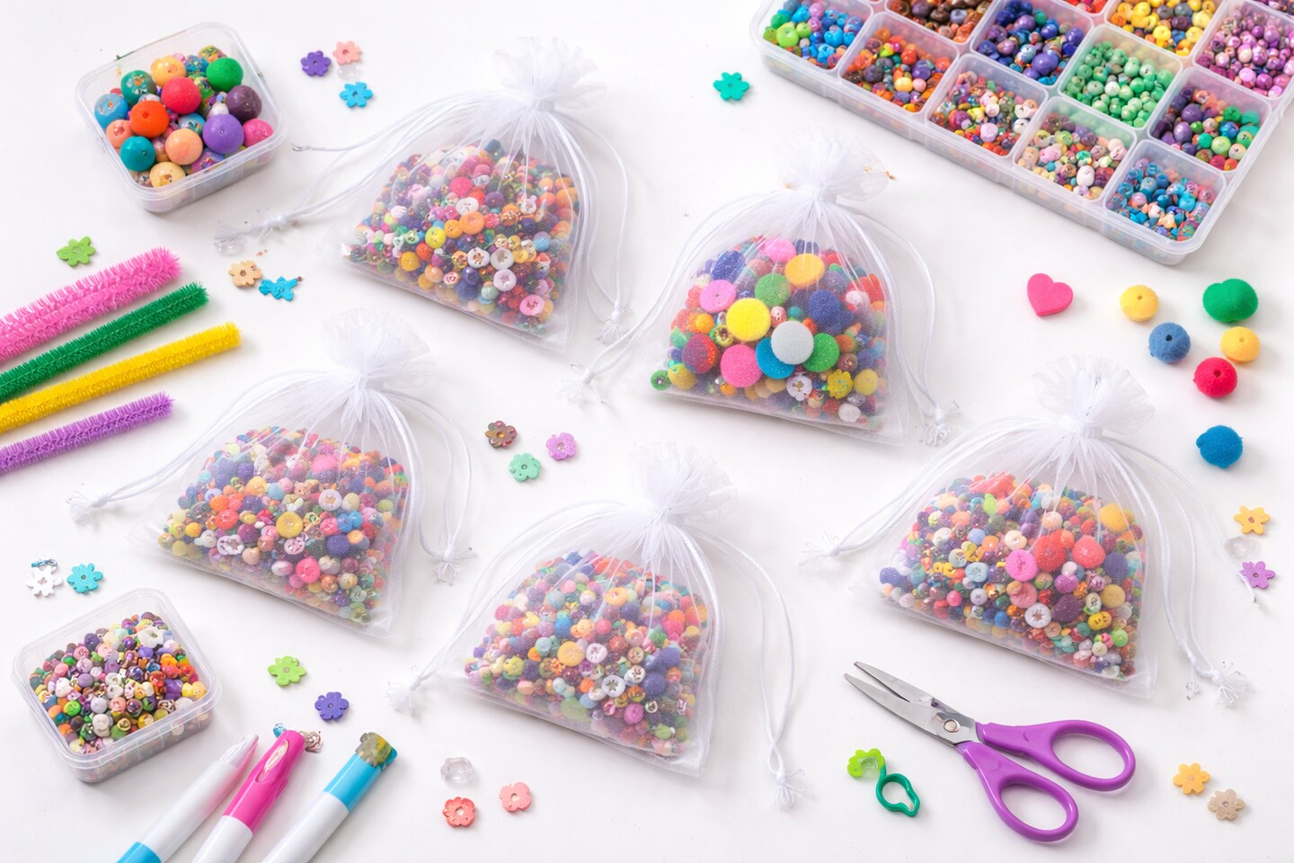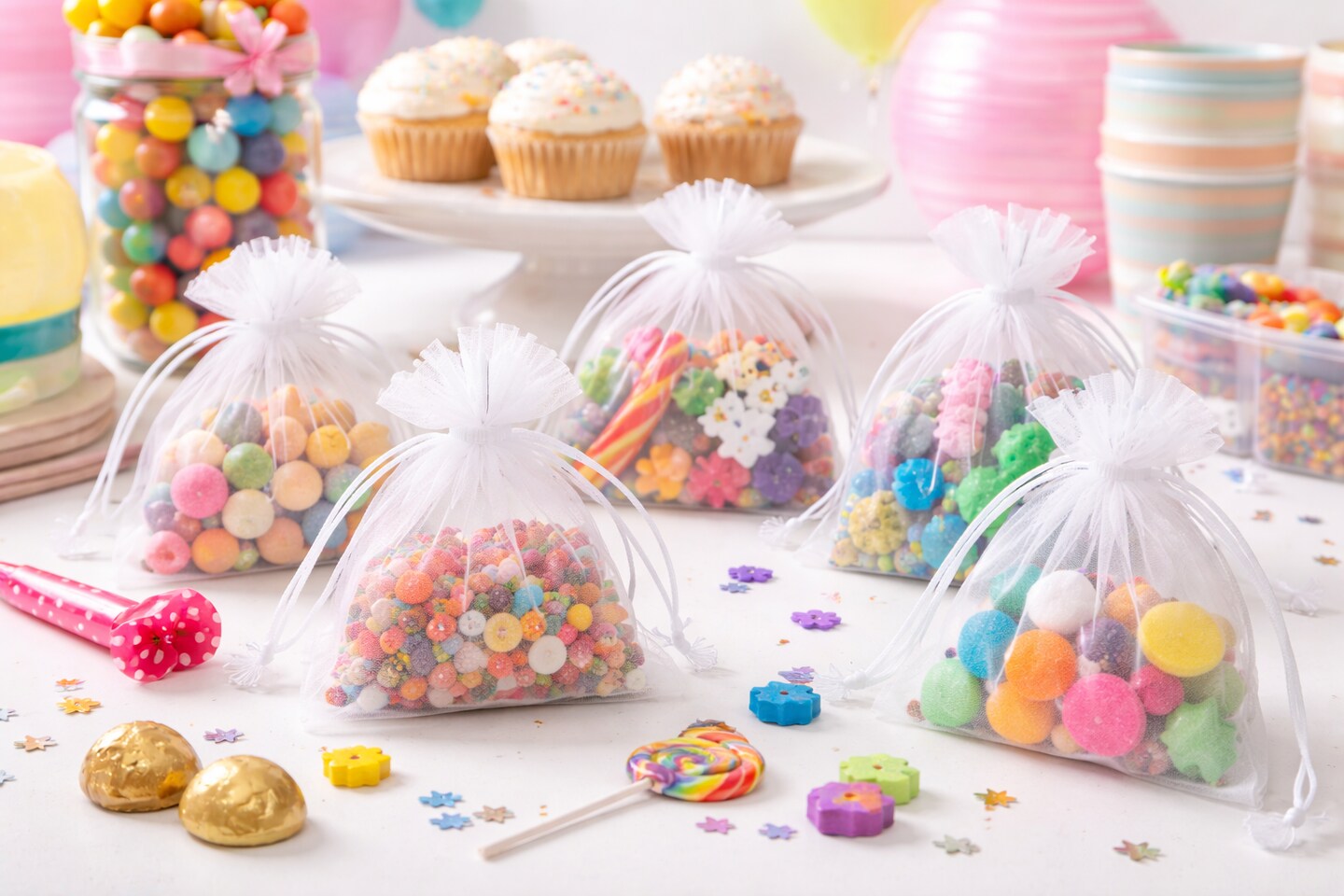 White Organza Drawstring Bags 3" x 4" – 10 Pack Sheer Favor Pouches for Crafts, Gifts & Classroom Use