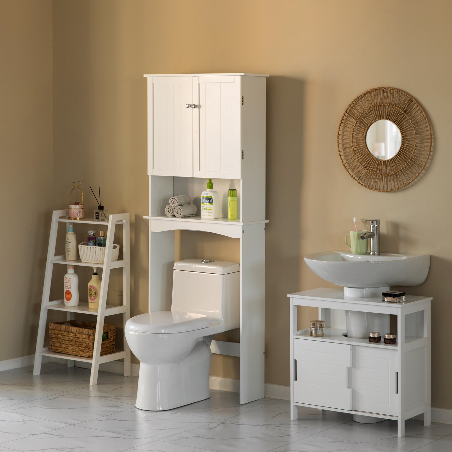 White Over the Toilet Standing Cabinet Organizer for Bathroom with Open Shelf