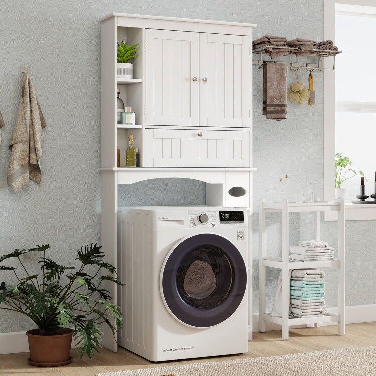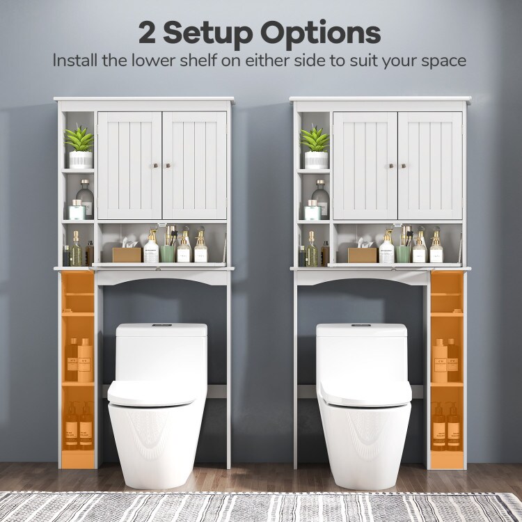 White Over-the-Toilet Storage Cabinet with Double Doors Adjustable Shelves and Tissue Holder