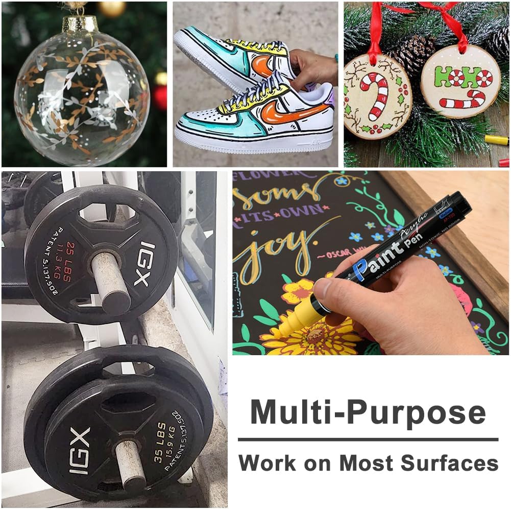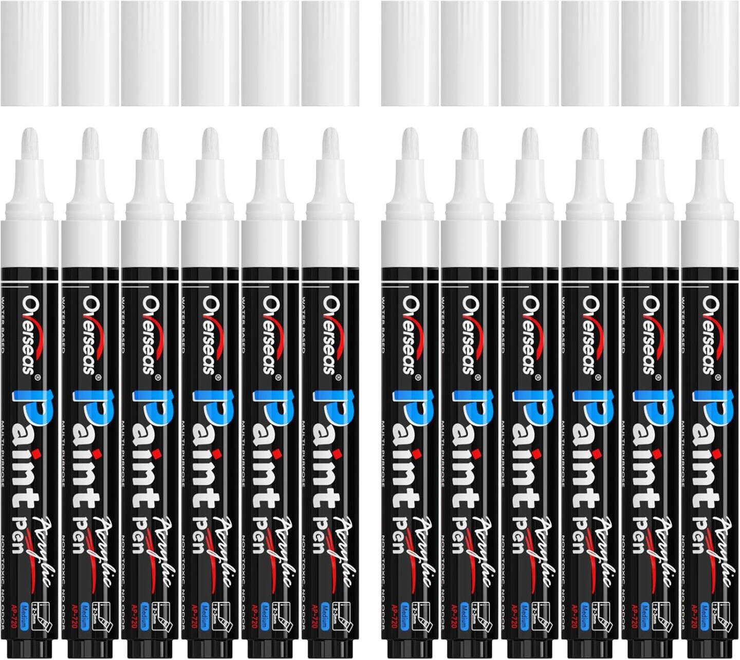 White Paint Pens - Permanent Acrylic Markers 12 Pack, Water-Based, Quick Dry, Waterproof Paint Marker Pen for Rock, Wood, Plastic, Metal, Canvas, Glass, Fabric, Mugs. Medium Tip