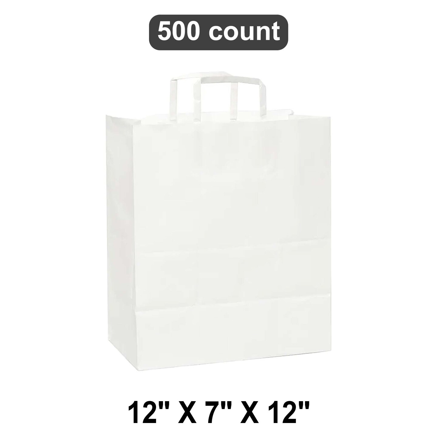 White Paper Bags with Flat Handles 12" x 7" x 12"
