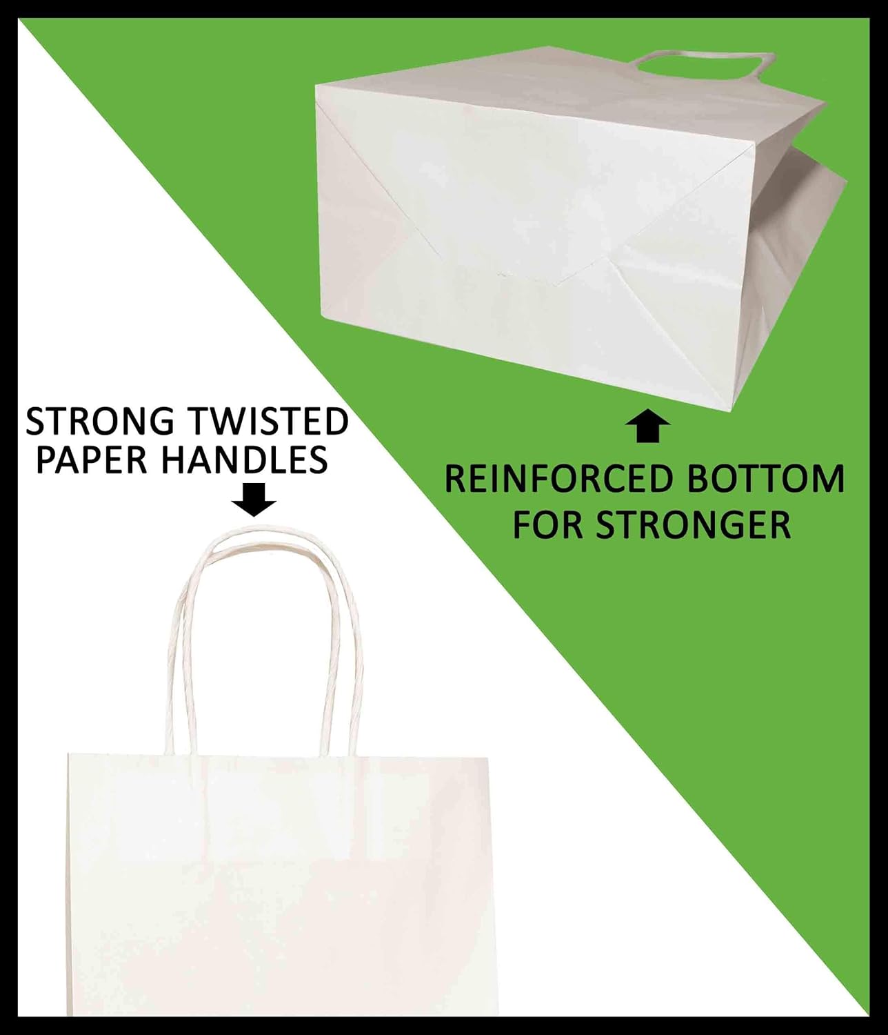 White Paper Gift Bags Bulk with Handles 5.25 X 3.25 X 8 [100 Bags] Ideal for Shopping, Packaging, Retail, Party, Craft, Gifts, Wedding, Recycled, Business, Goody and Merchandise Kraft Bag