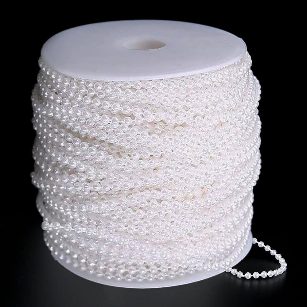 White Pearl Garland Strand,2.5mm Crystal Beads Faux Bead Spool Rope for Wedding Party Decoration