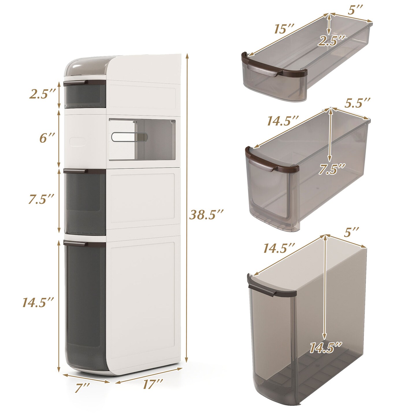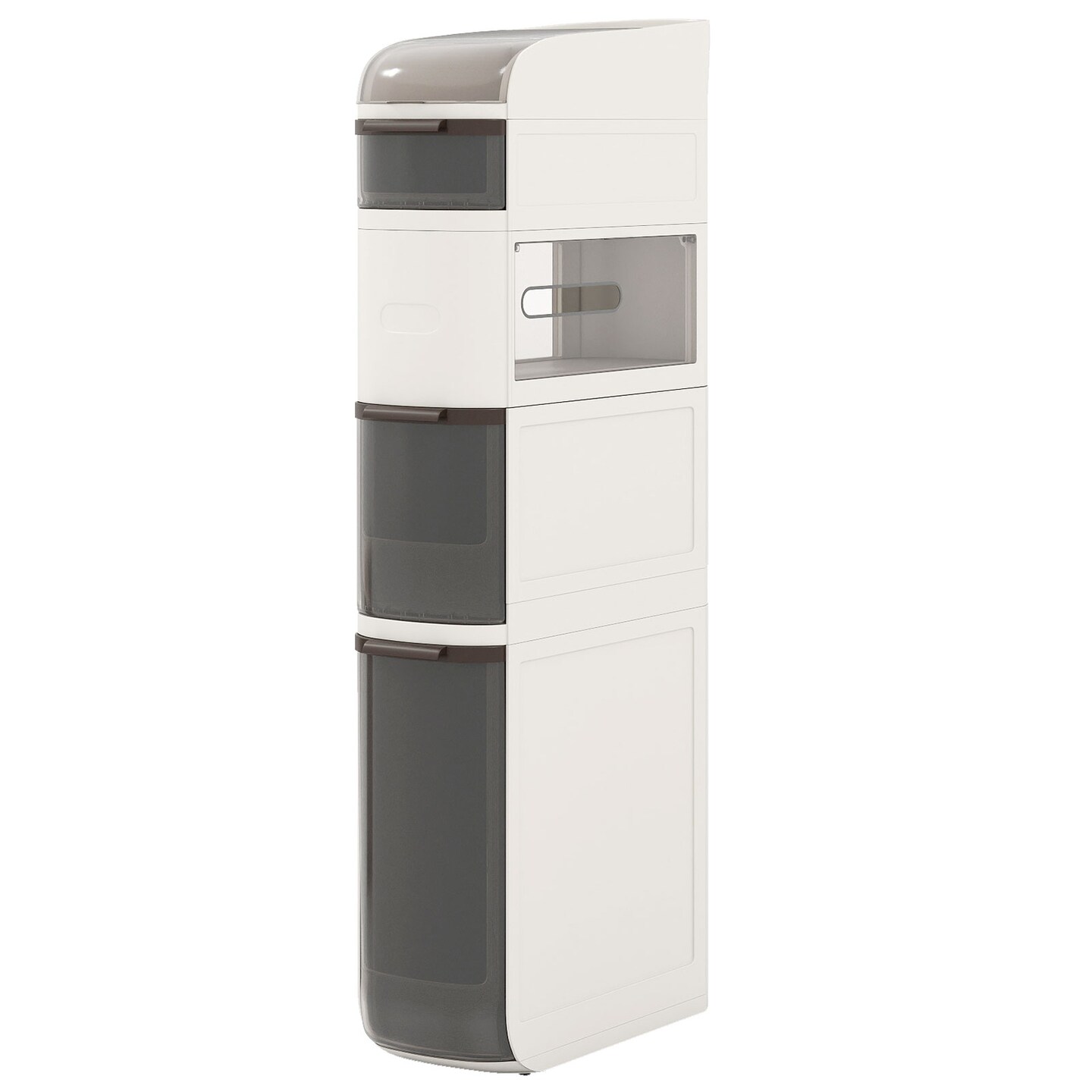 White PET Bathroom Storage Cabinet with Wheels and Drawers