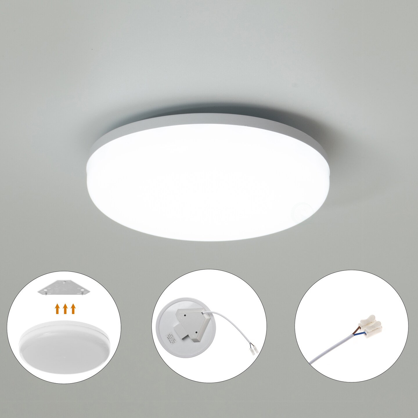 White Plastic 6 in Round LED Ceiling Light Fixture for Entryway, Office, Outdoor, 6500K Daylight, 2000lm 20W