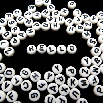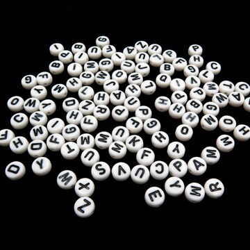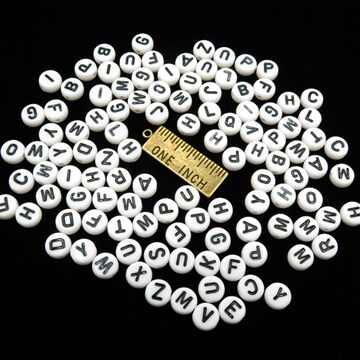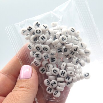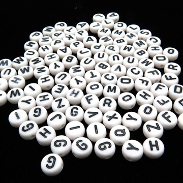 White Plastic Alphabet Beads With Black Letters (K131)
