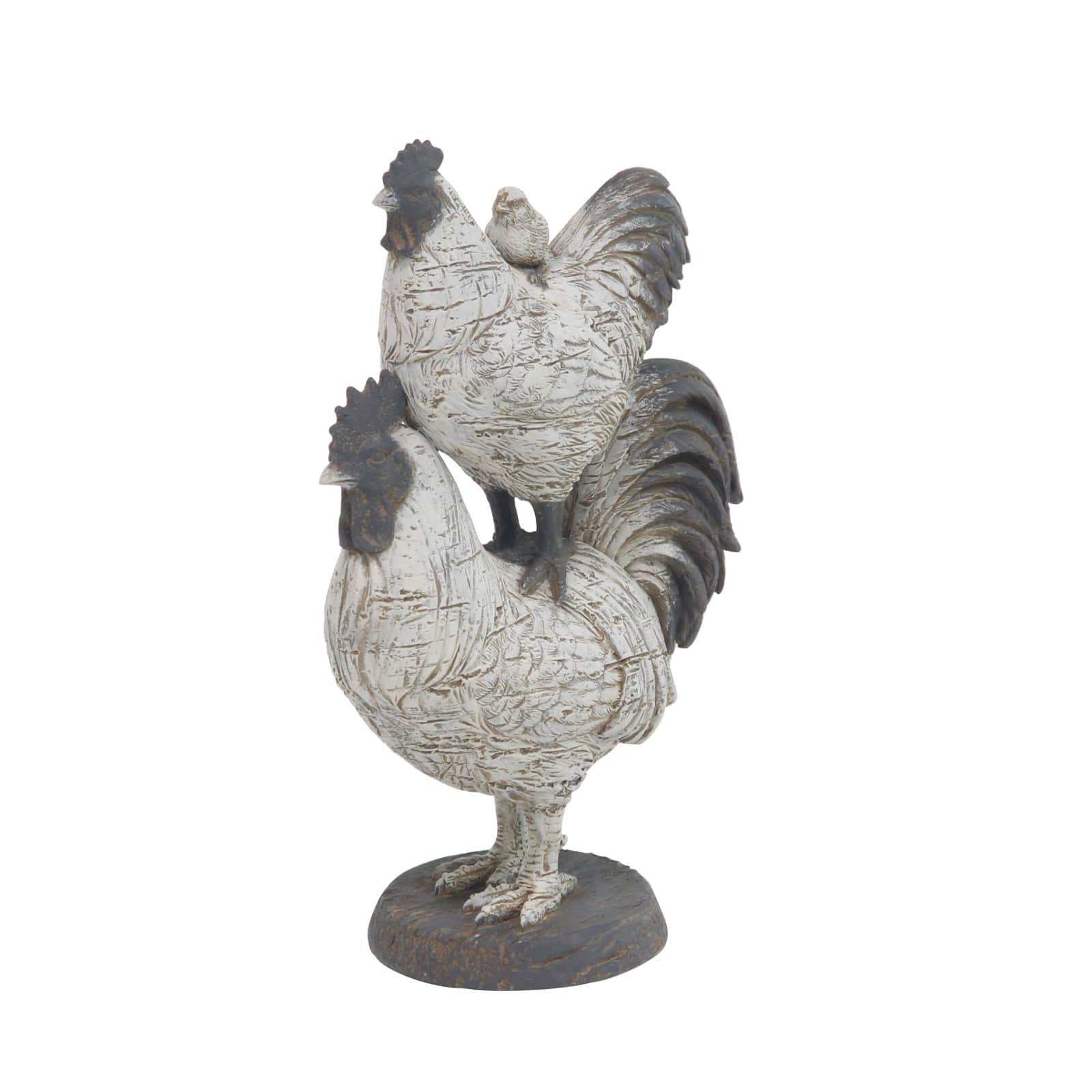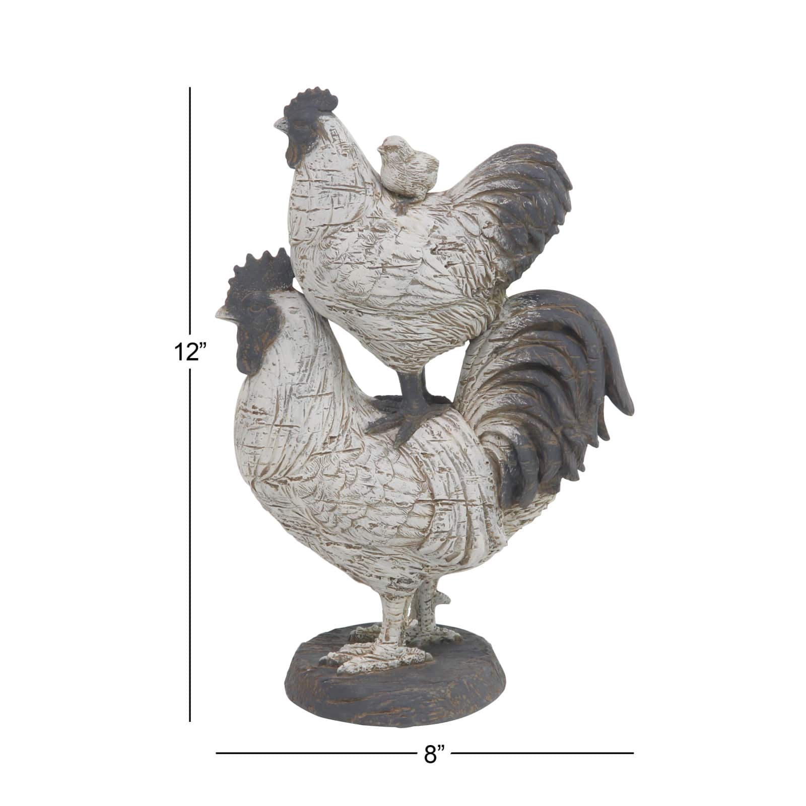 White Polystone Farmhouse Sculpture, Rooster 12" x 8" x 5"
