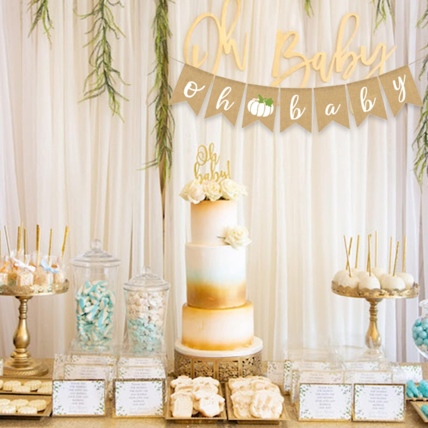 White Pumpkin Baby Shower Fall Banner Gender Neutral Autumn
