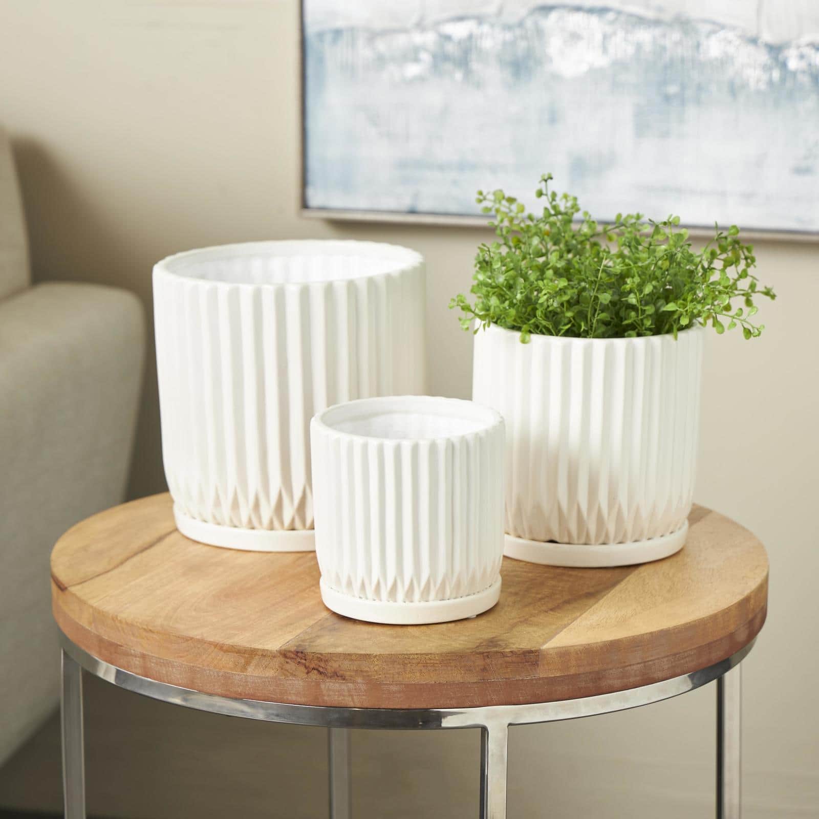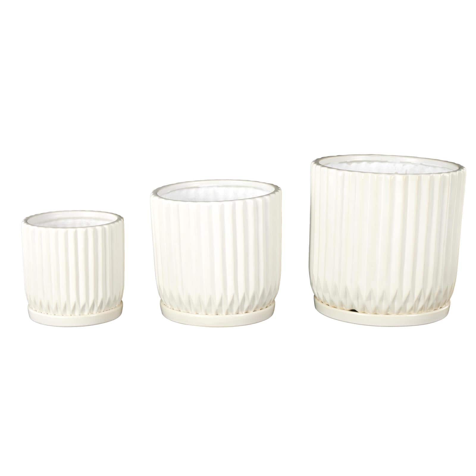 White Ribbed Textured Ceramic Planter Set