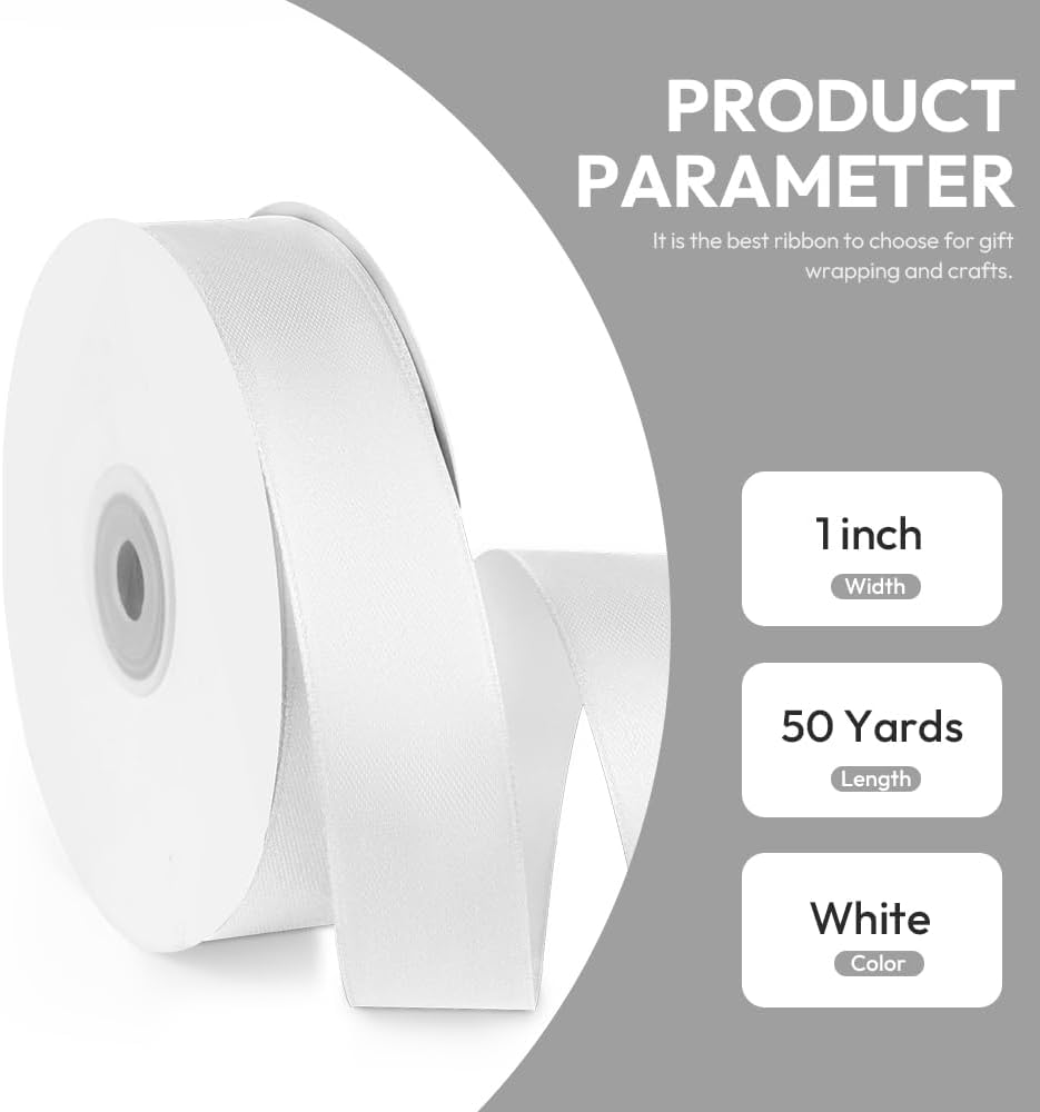 White Ribbon 1-1/2 inch 60 Yards Double Faced White Polyester Satin Ribbon