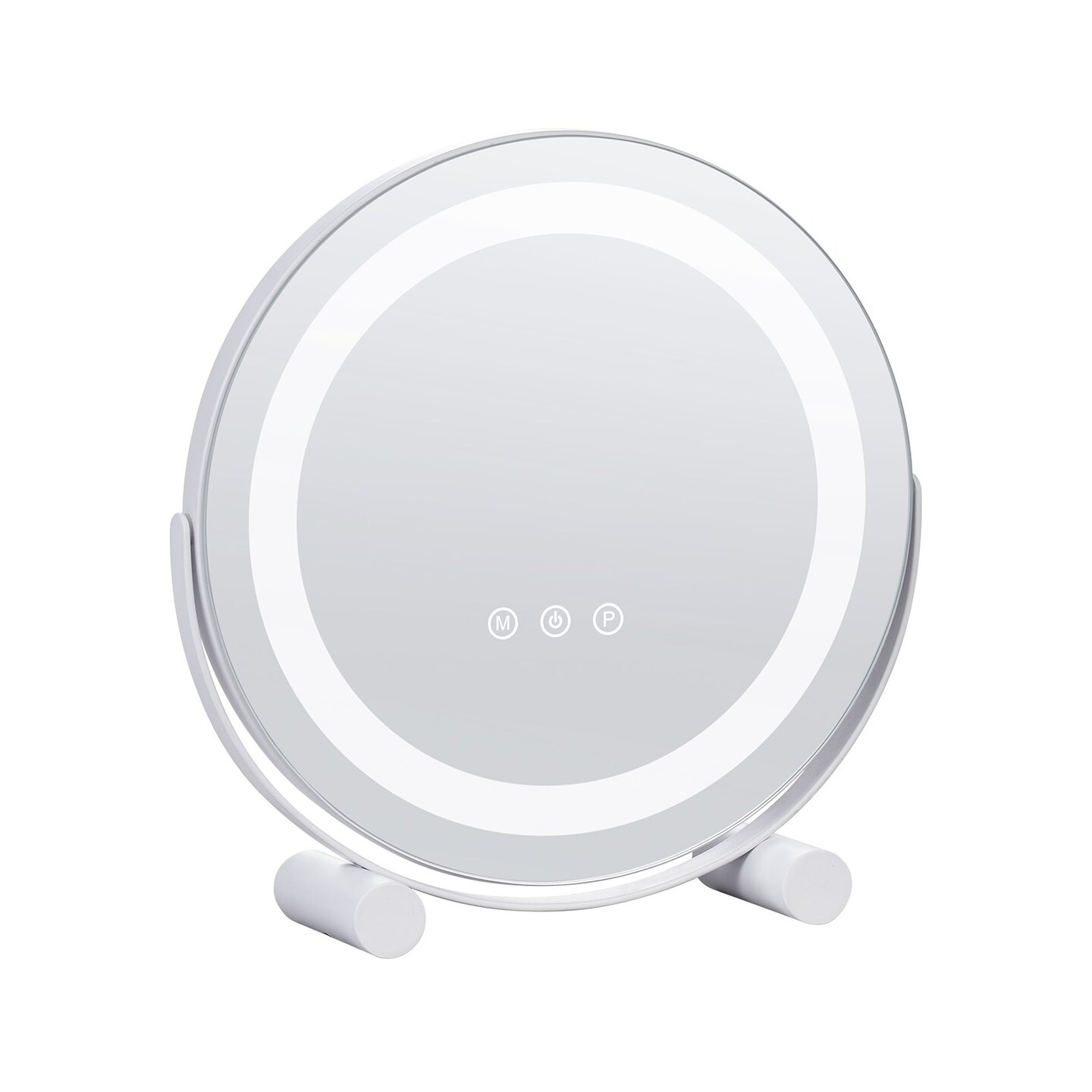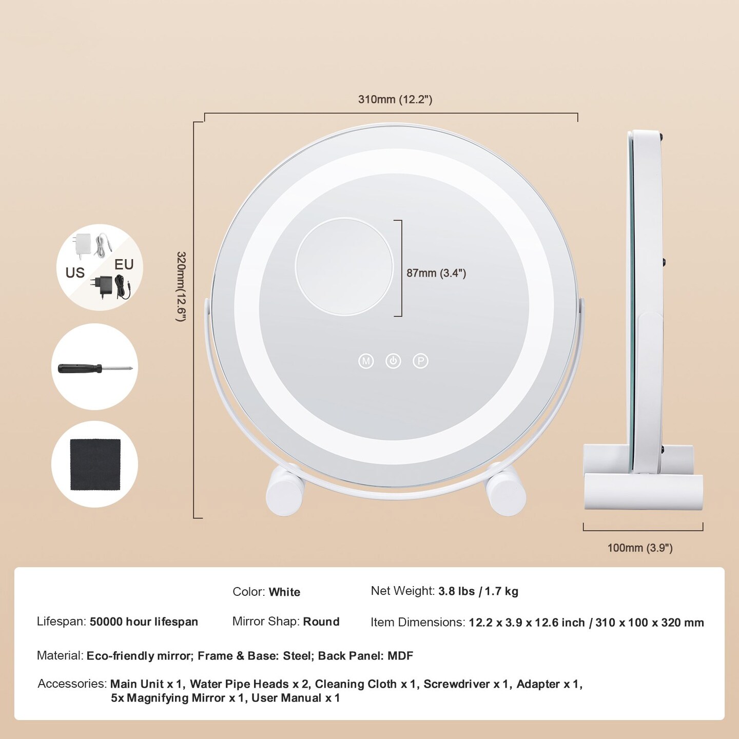 White Round LED Makeup Mirror with 3 Light Modes, 5X Magnifier and 360 Degree Rotation