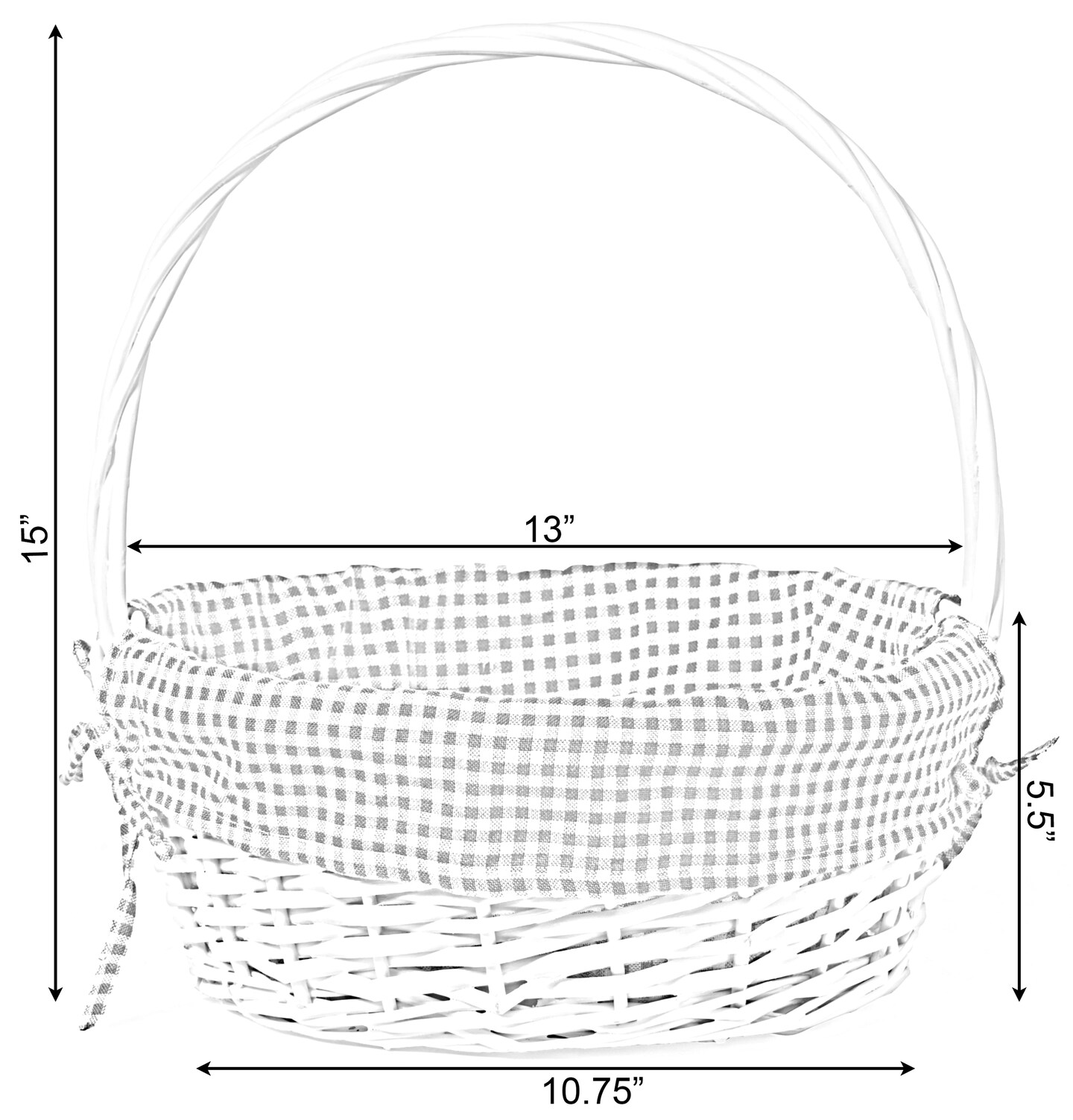 White Round Willow Gift Basket, with Gingham Liner and Handles