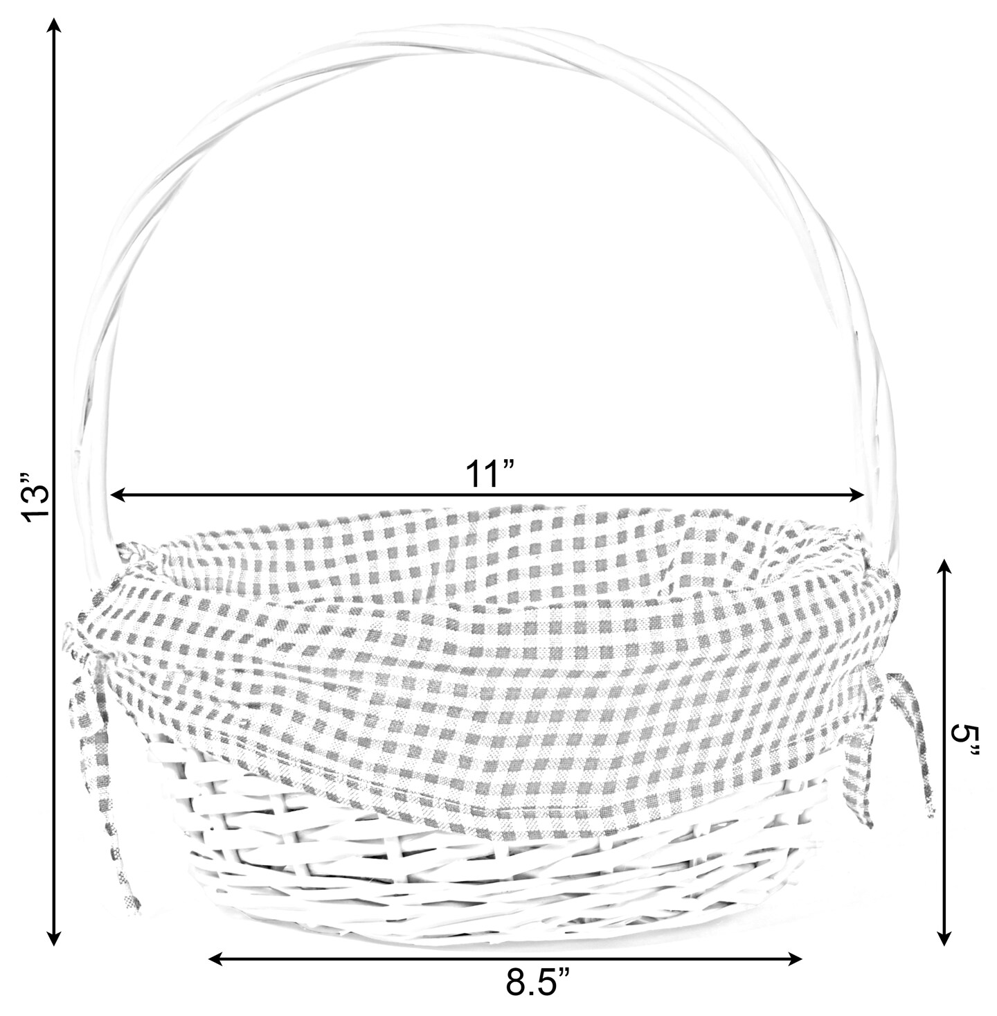 White Round Willow Gift Basket, with Gingham Liner and Handles