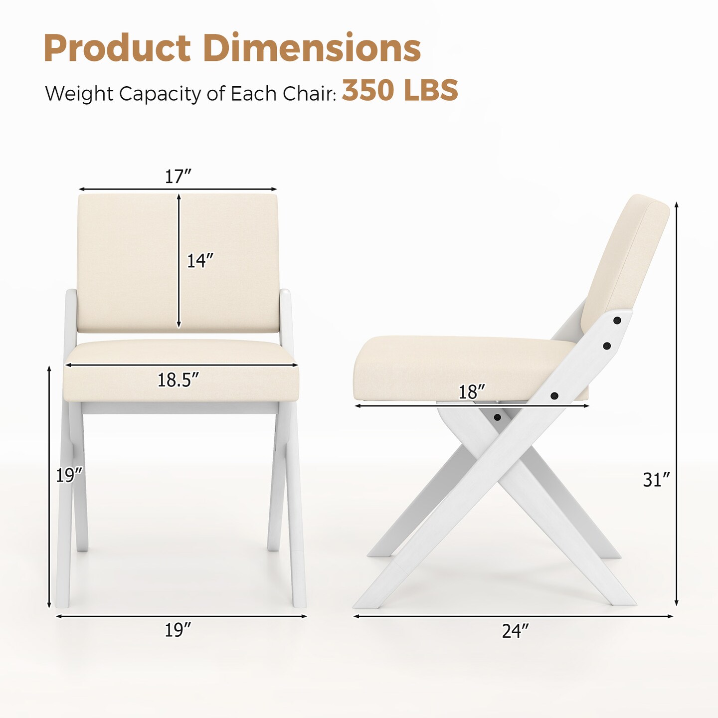 White Rubber Wood Dining Chairs Set of 2 with Cushioned Seat and Backrest