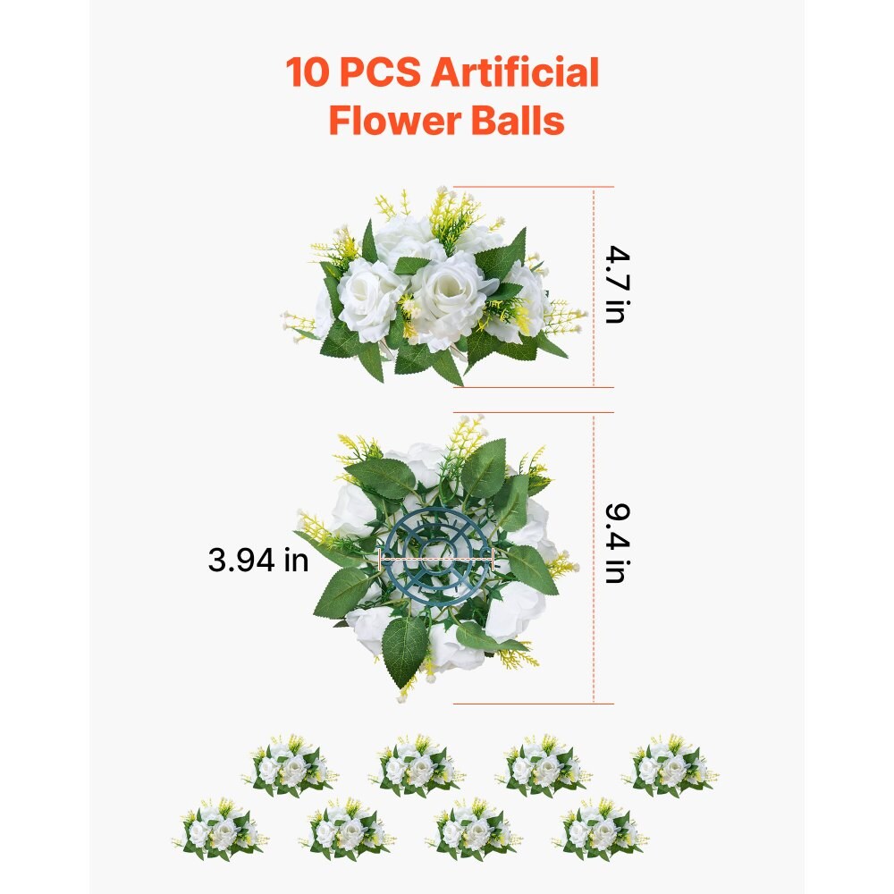 White Silk Rose Flower Balls Set of 10 with Base for Wedding Centerpieces
