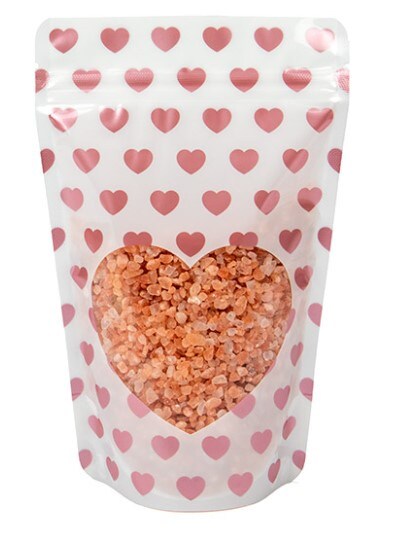 White Stand Up Zipper Pouch with Rose Gold Mini Hearts 5 1/8" x 3 1/8" x 8 1/8" 25 pack ZBGSW3MH
