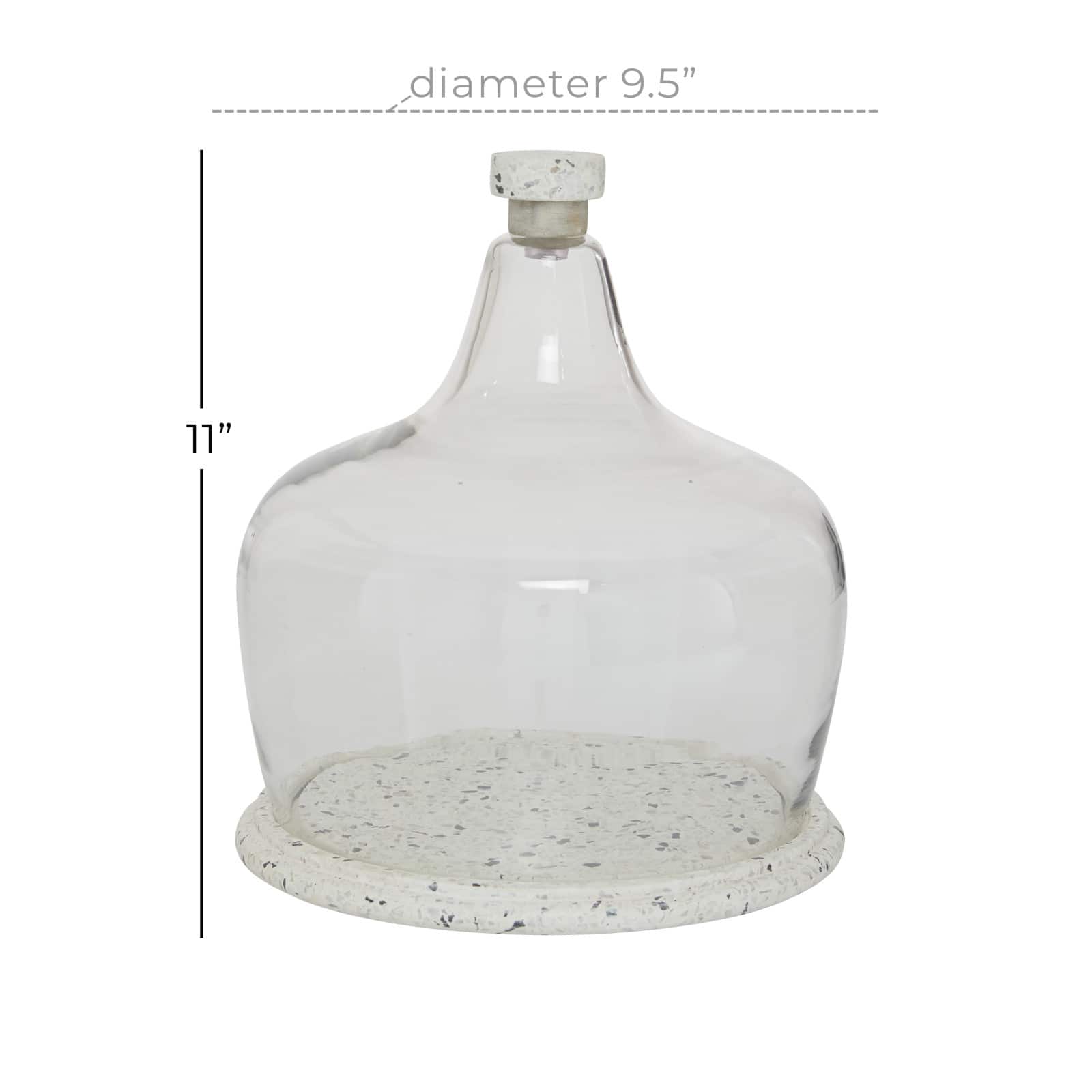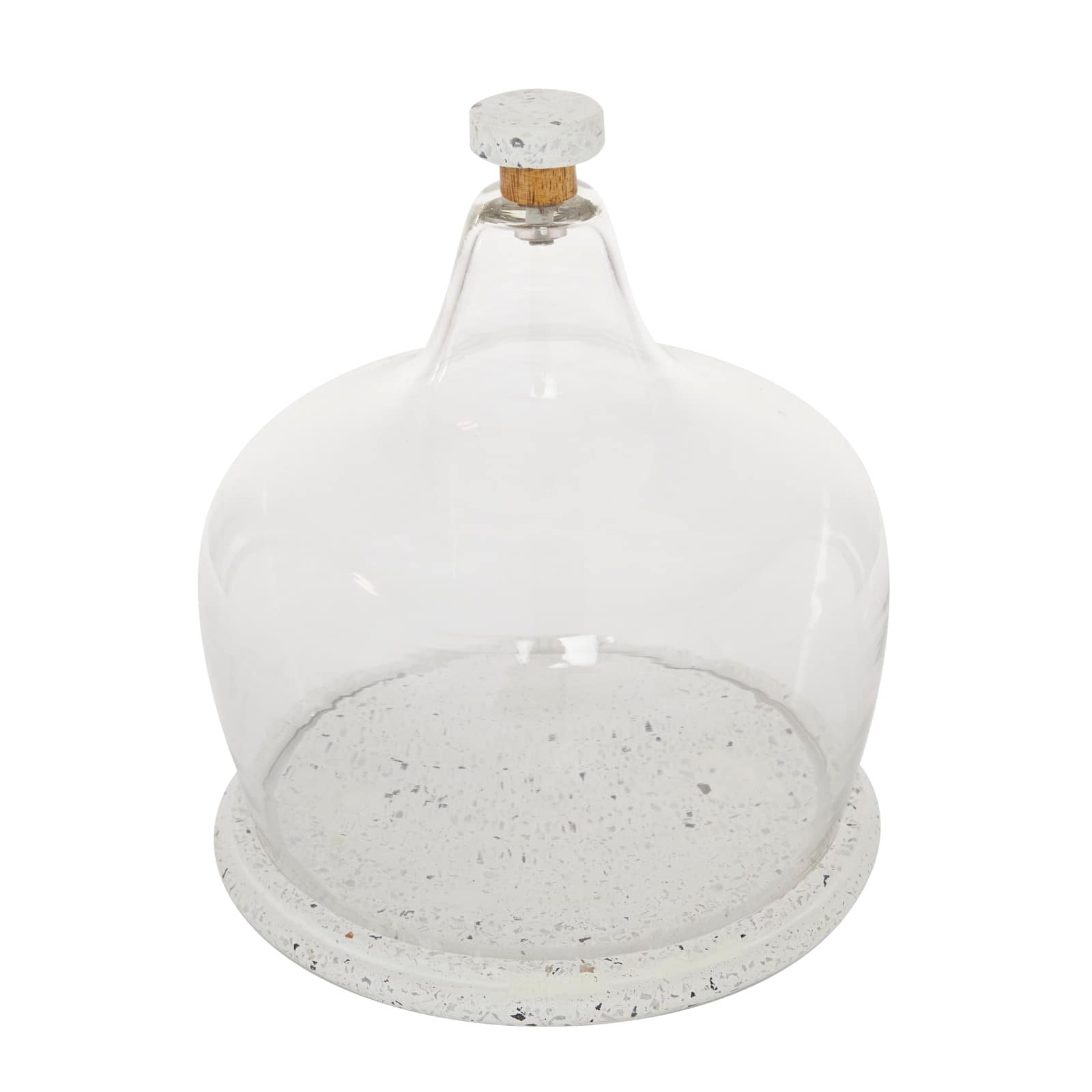 White Stoneware and Glass Contemporary Cake Stand with Cloche, 11" x 9" x 9"