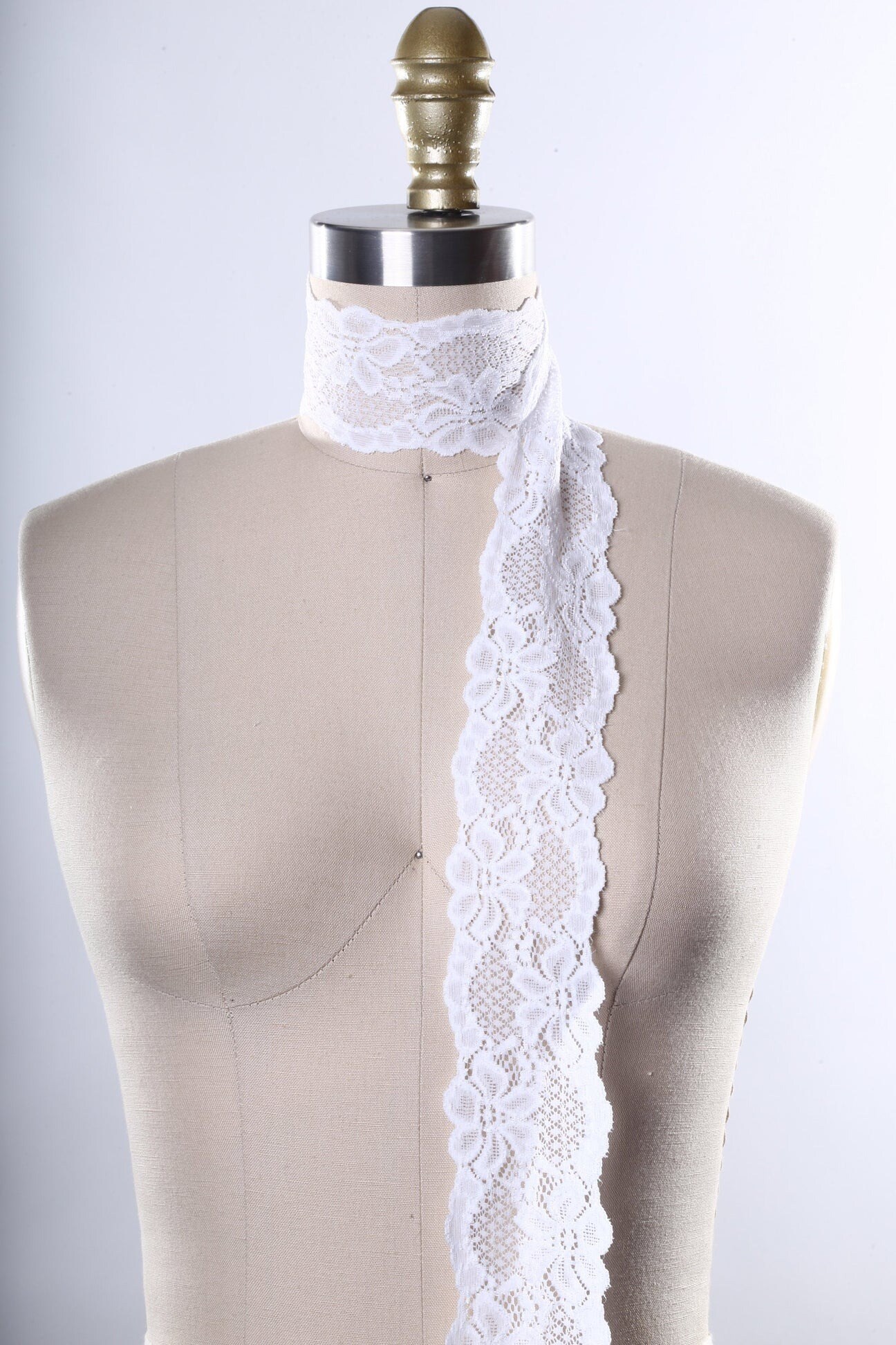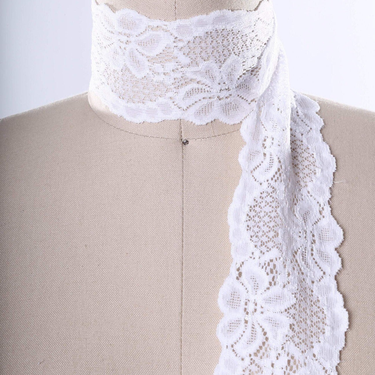White Stretch Lace Trim 2.5 Inch Wide Soft Elastic Scalloped Floral Edging Both Sides 2 Yards