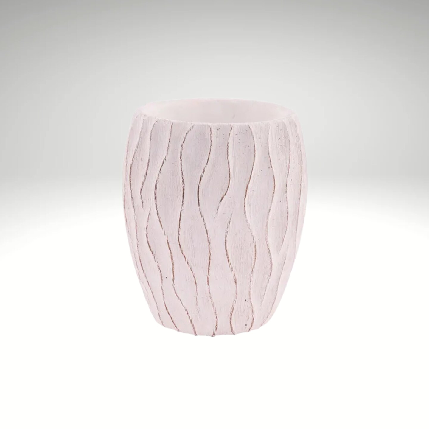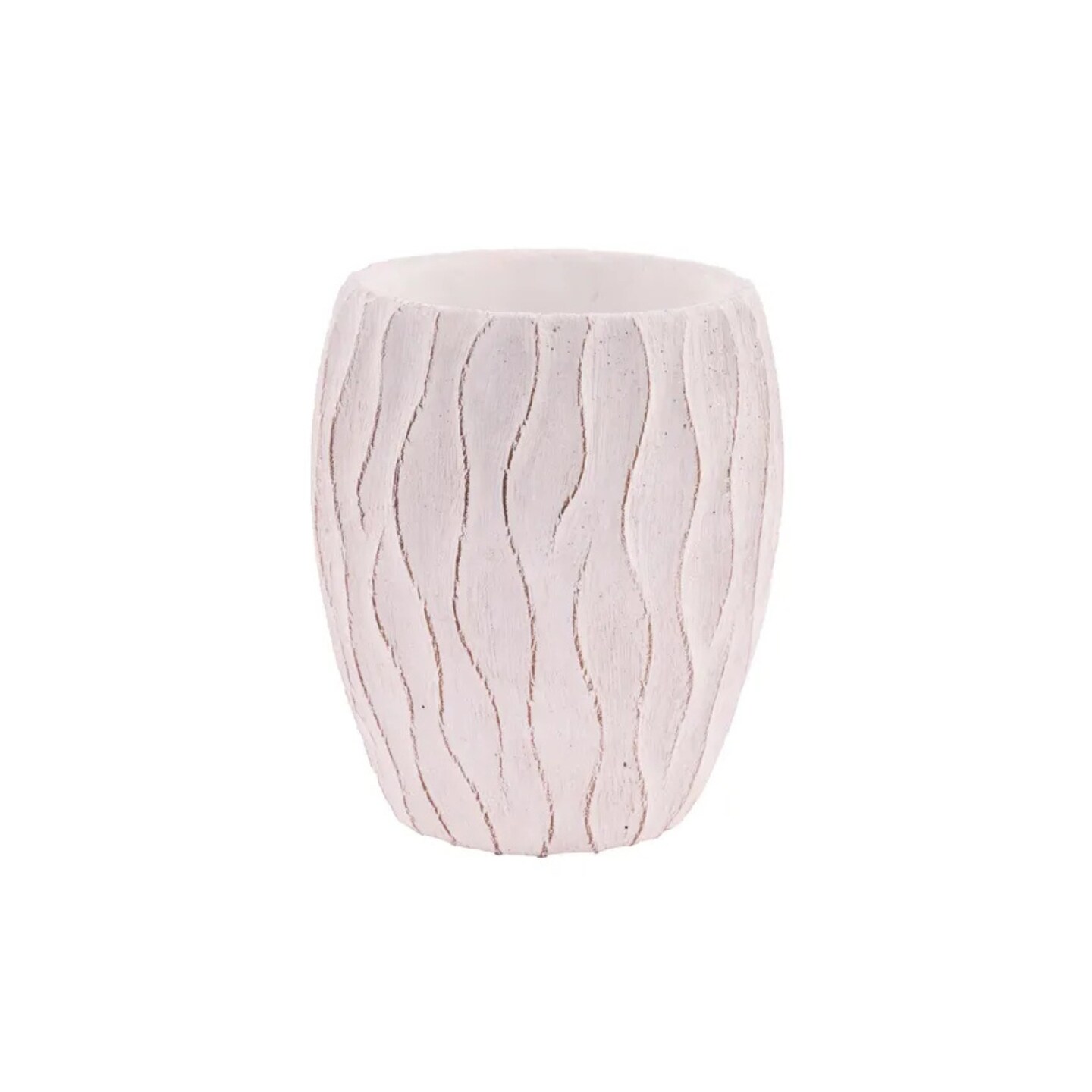White Textured Wavy-Line Cement Planter 6.5"-MX111827