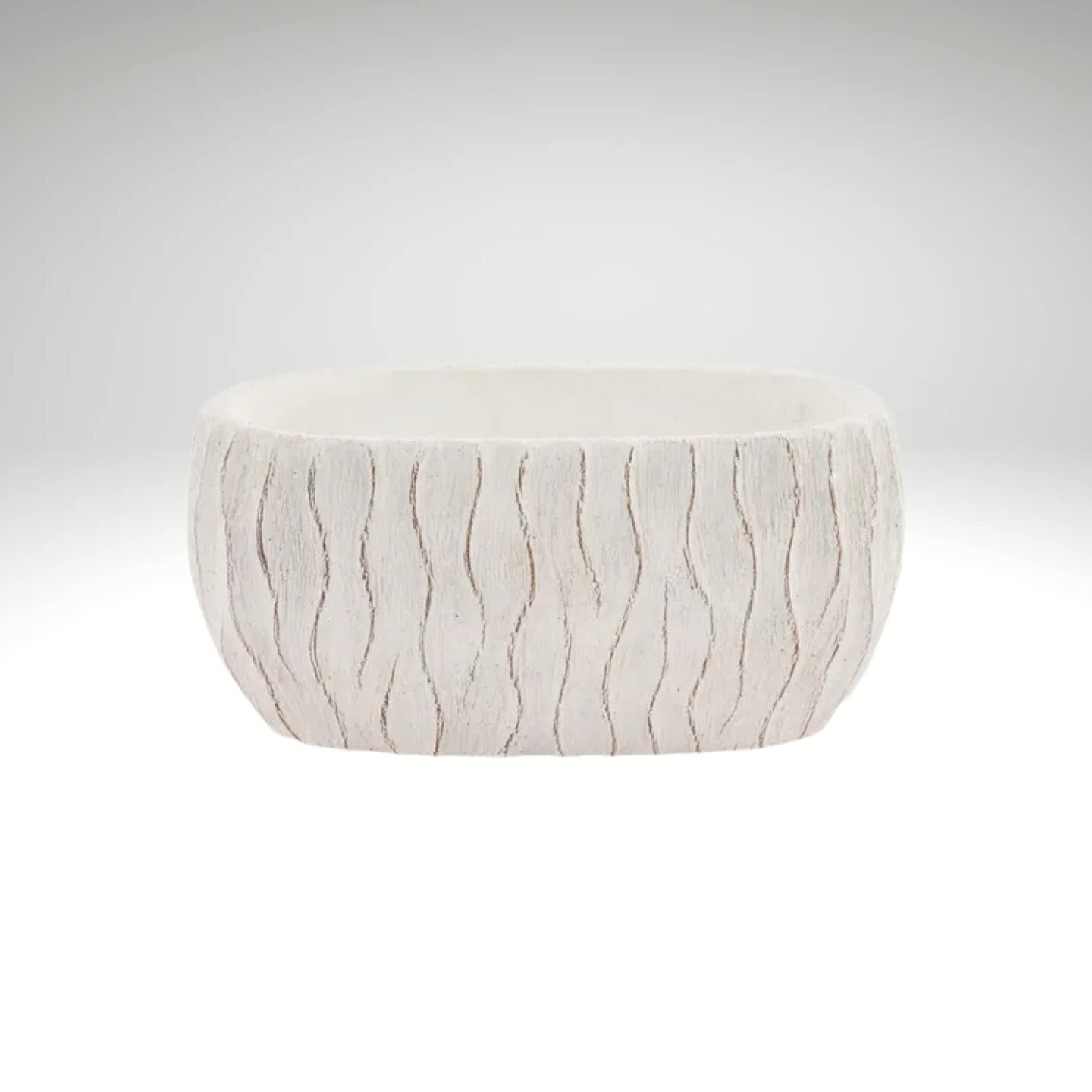 White Textured Wavy-Line Cement Planter 8.25"-MX112227