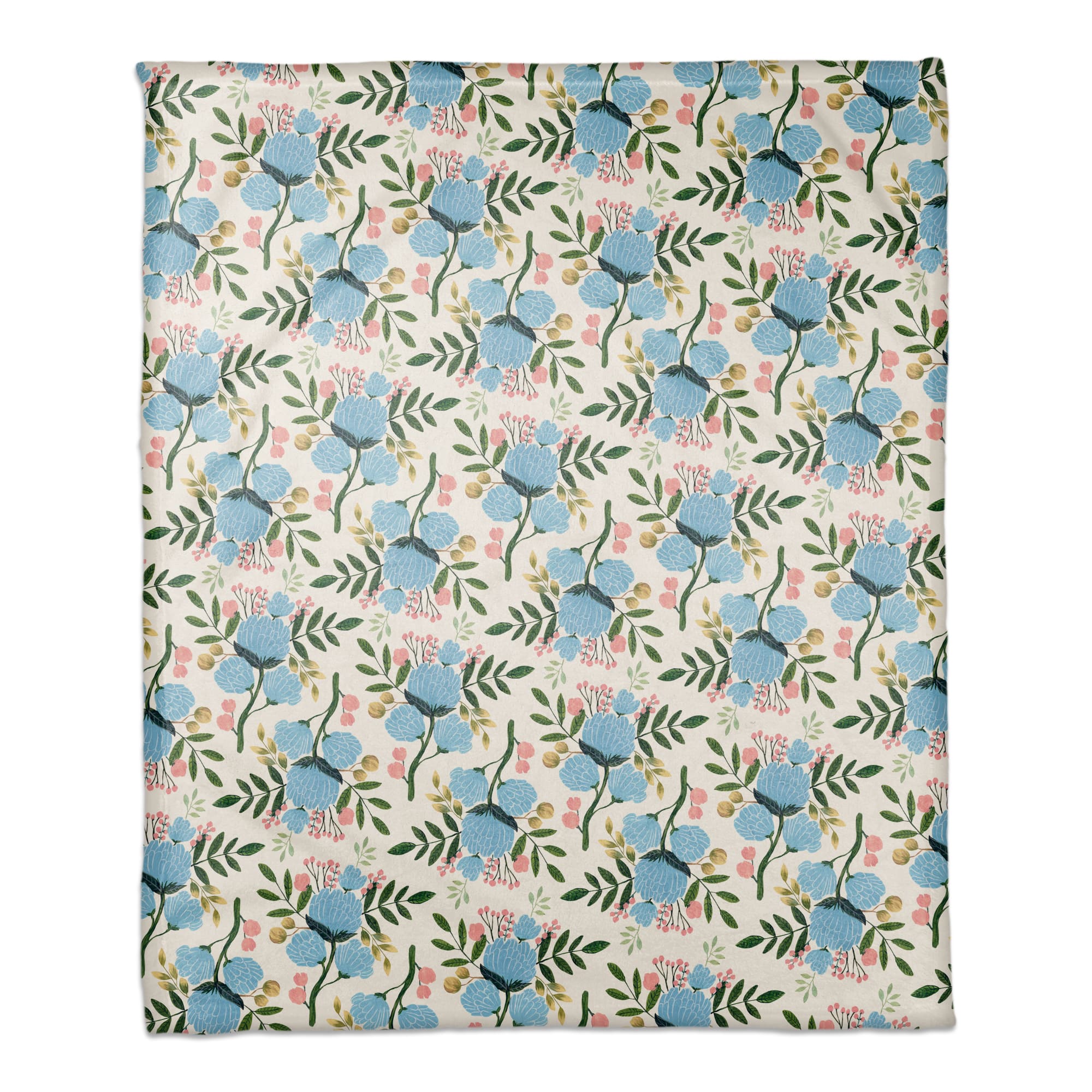 White Throw Blanket with Blue Floral Pattern