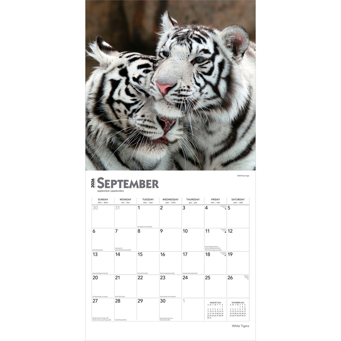 White Tigers | 2026 12 x 24 Inch (Hanging) Monthly Square Wall Calendar | Plastic-Free
