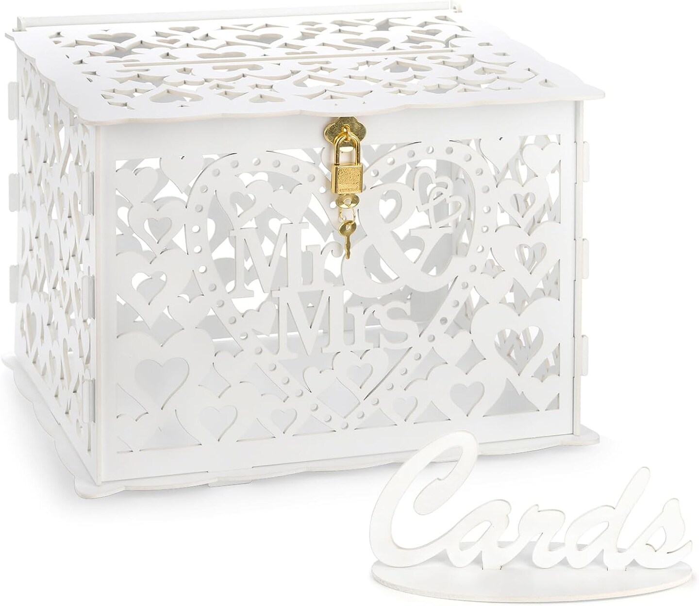 White Wedding Card Box with Mr & Mrs Sign Wooden Card Box with Lock Wedding Box for Cards and Money Gift Box for Reception