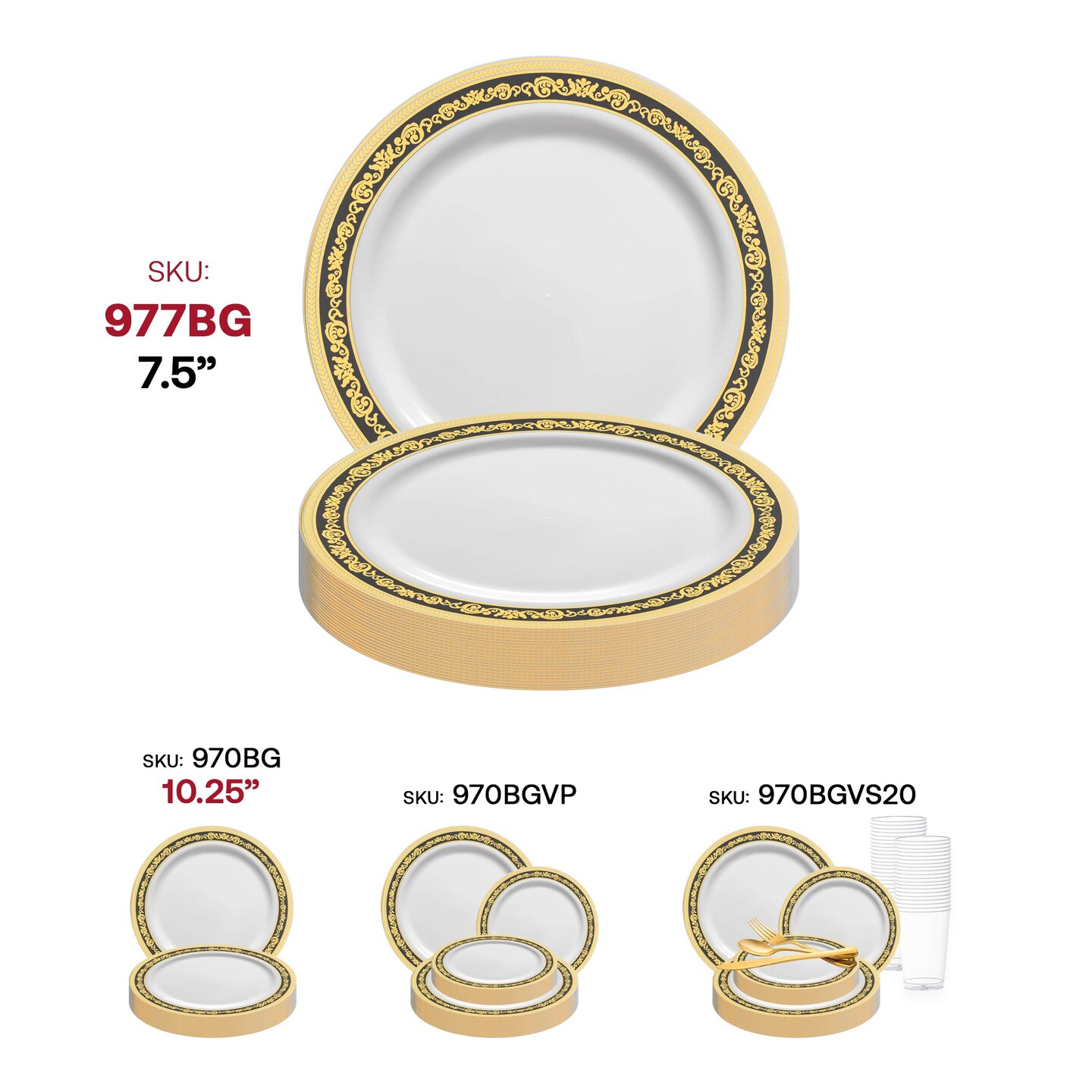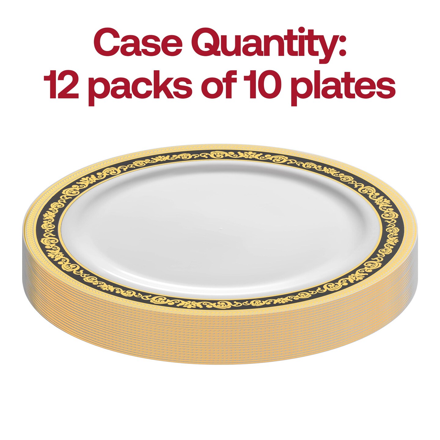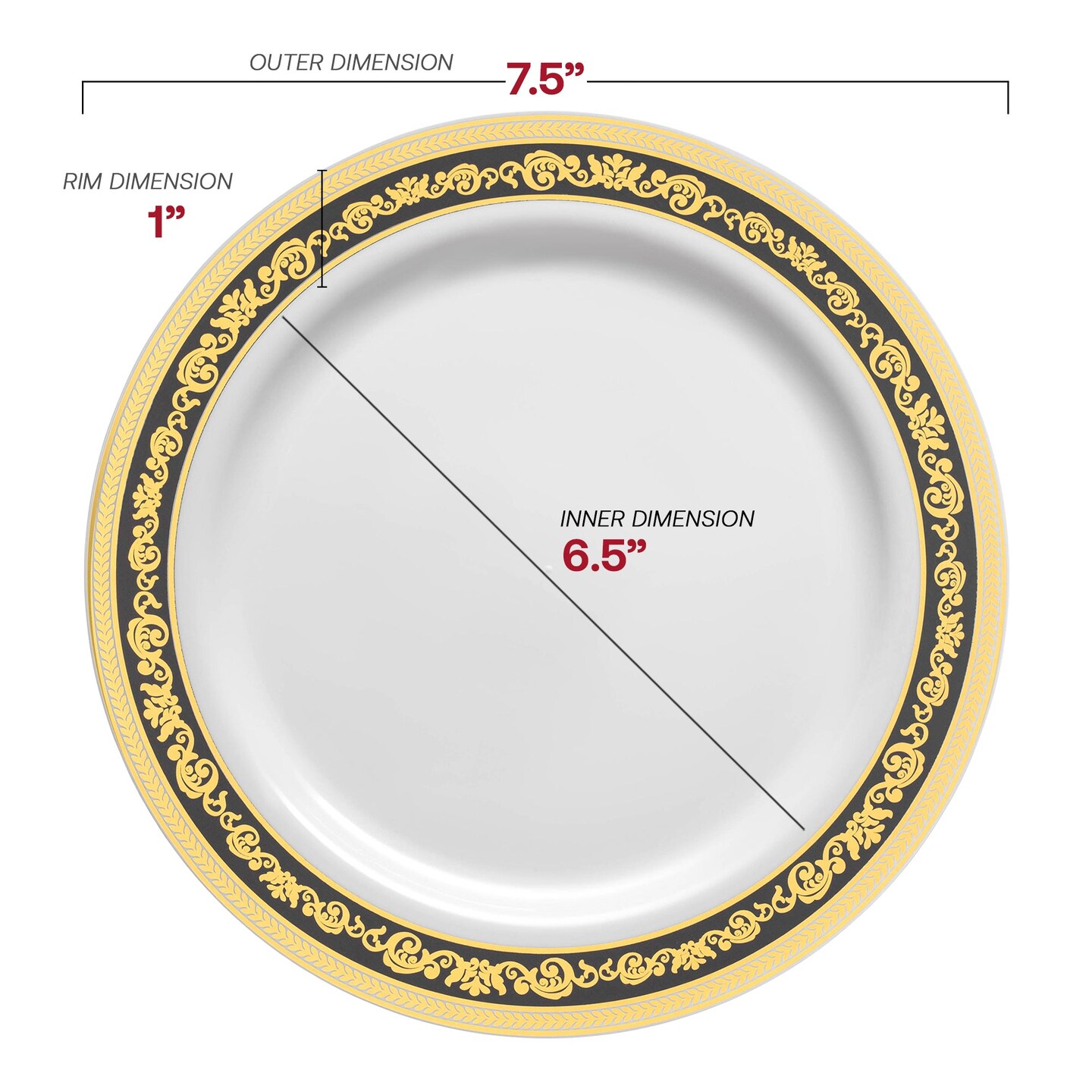 White with Black and Gold Royal Rim Plastic Appetizer/Salad Plates - 7.5" (120 Plates)