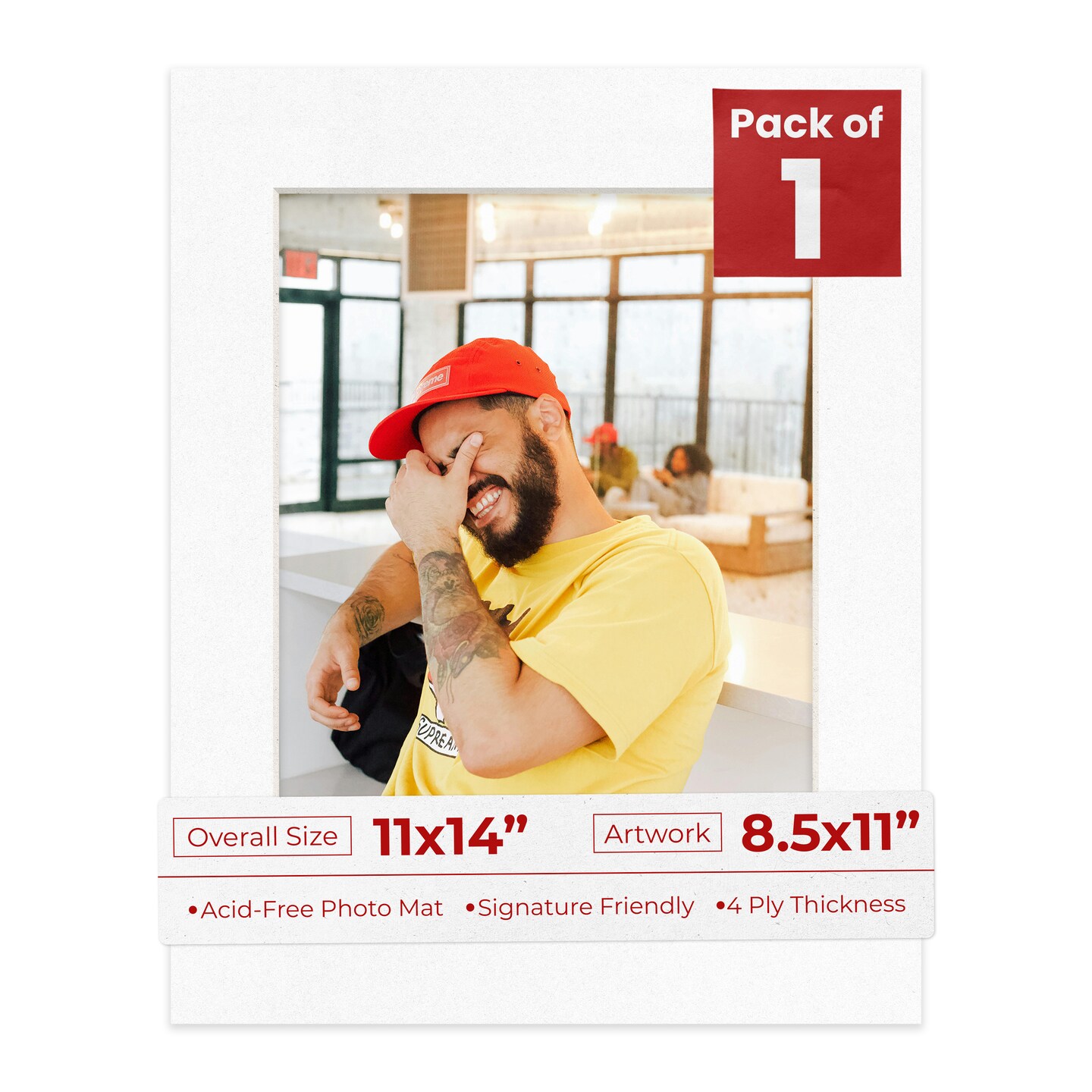 White with Black Core Mat Board for 11x14 Frames - Fits 8.5x11 Photos