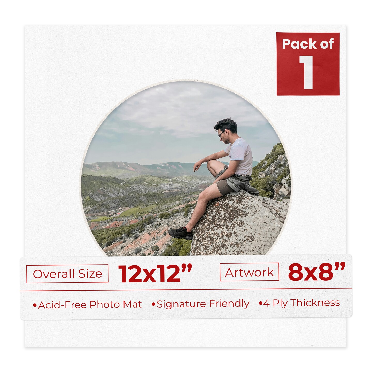 White with Black Core Mat Board for 12x12 Frames - Circle Opening for 8x8 Photos