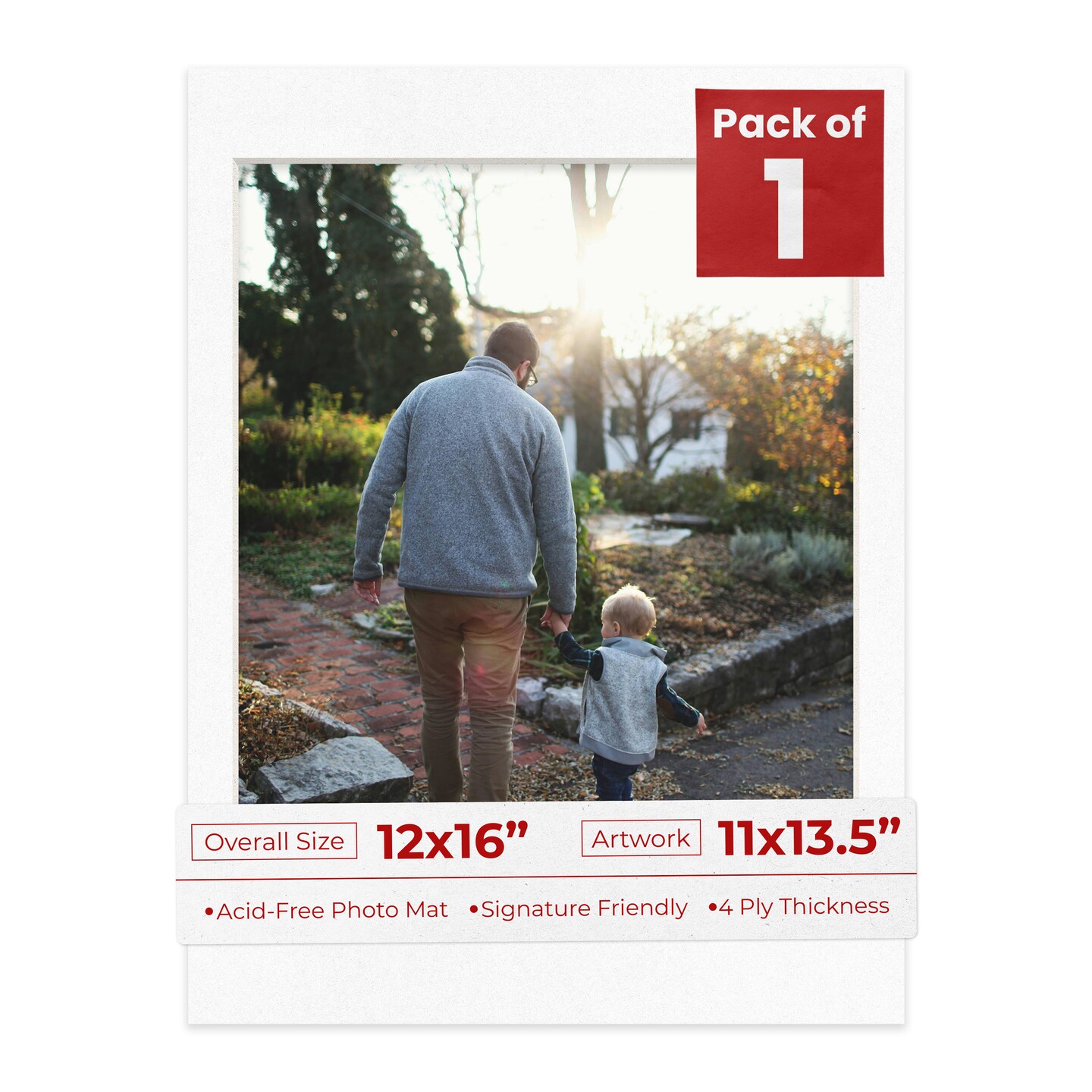 White with Black Core Mat Board for 12x16 Frames - Fits 11x13.5 Photos