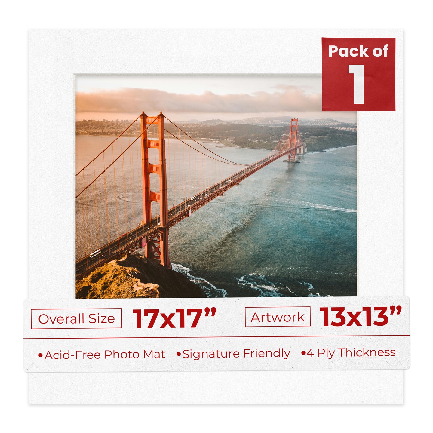 White with Black Core Mat Board for 17x17 Frames - Fits 13x13 Photos