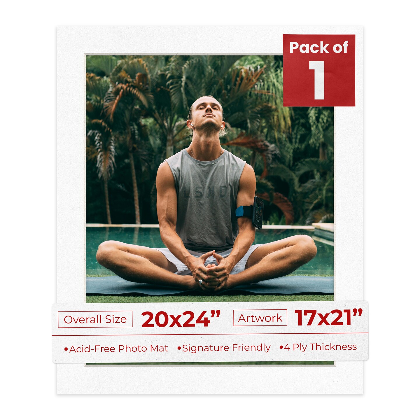 White with Black Core Mat Board for 20x24 Frames - Fits 17x21 Photos