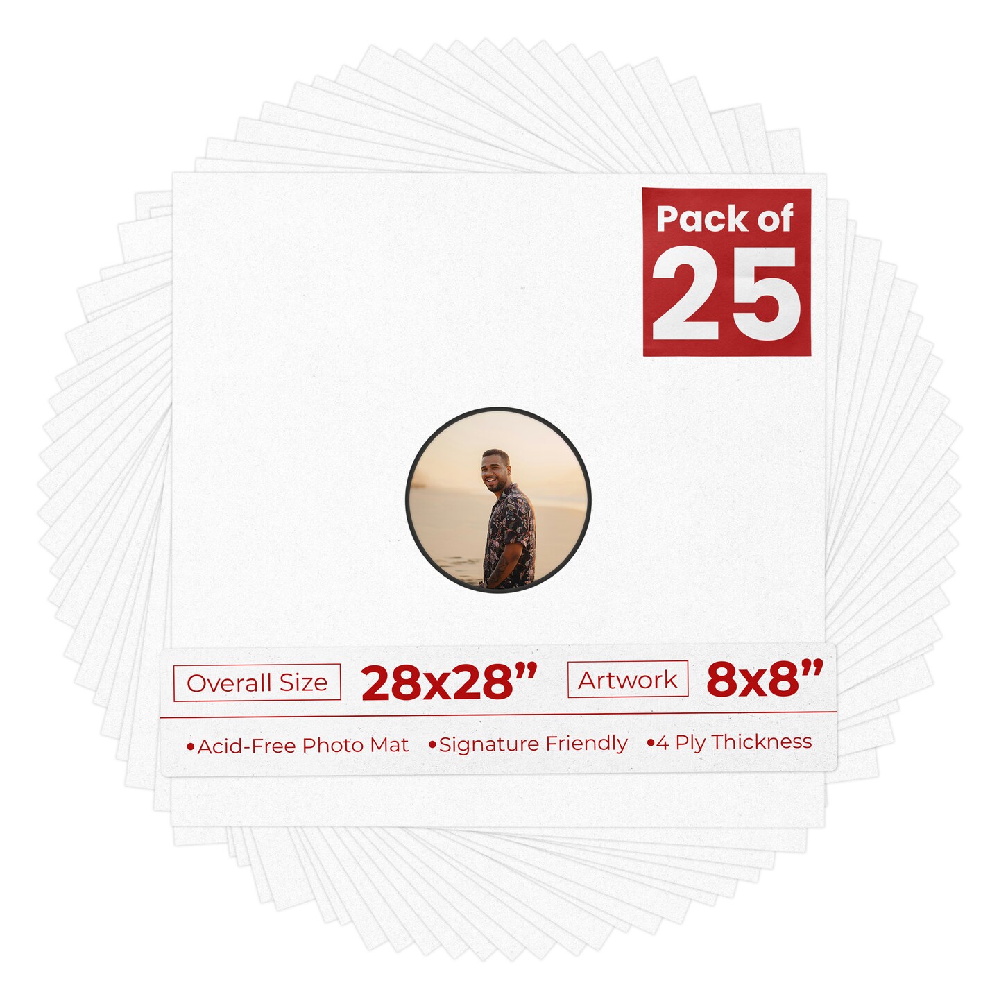White with Black Core Mat Board for 28x28 Frames - Circle Opening for 8x8 Photos