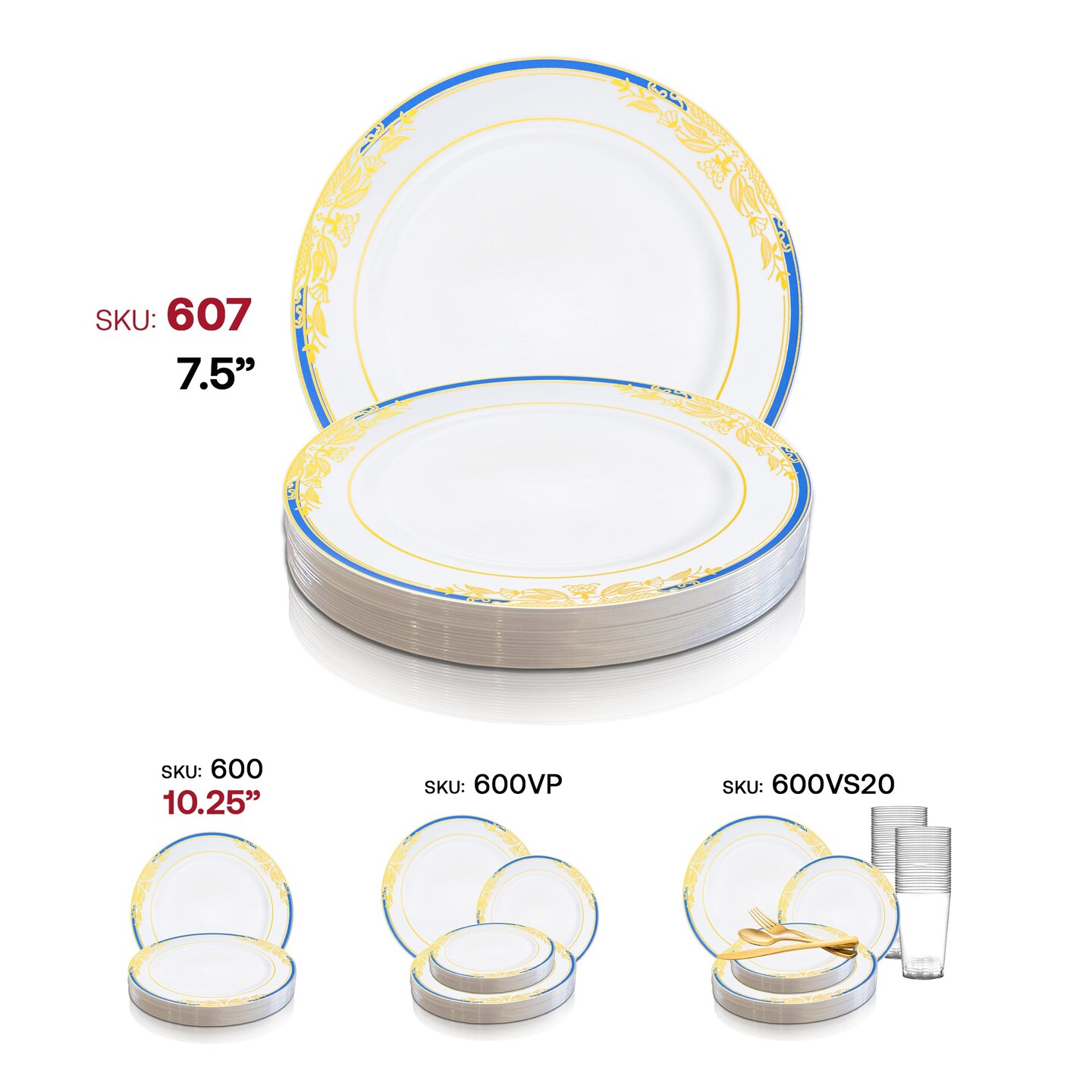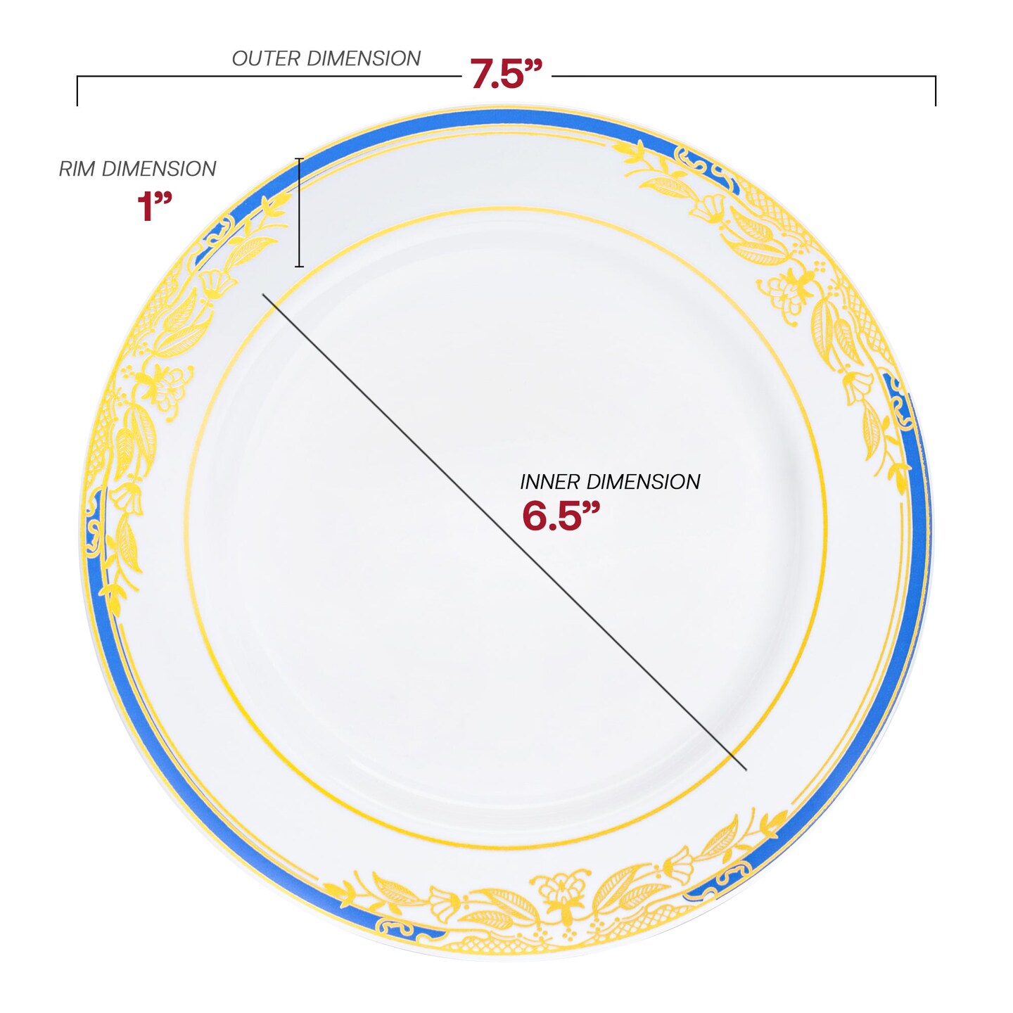 White with Blue and Gold Harmony Rim Plastic Appetizer/Salad Plates - 7.5" (120 Plates)