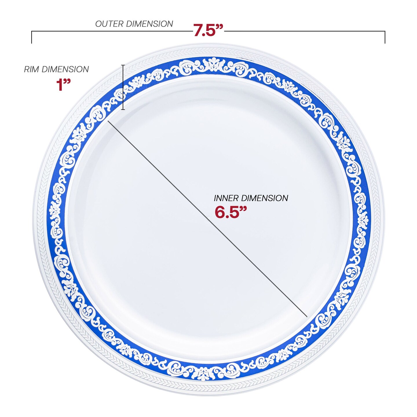 White with Blue and Silver Royal Rim Plastic Appetizer/Salad Plates - 7.5" (120 Plates)