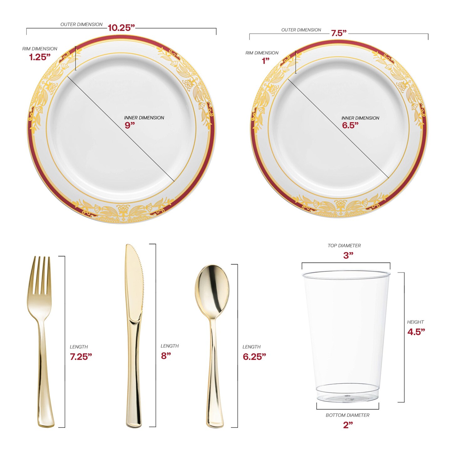 White with Burgundy and Gold Harmony Rim Plastic Wedding Value Set (20 Settings)