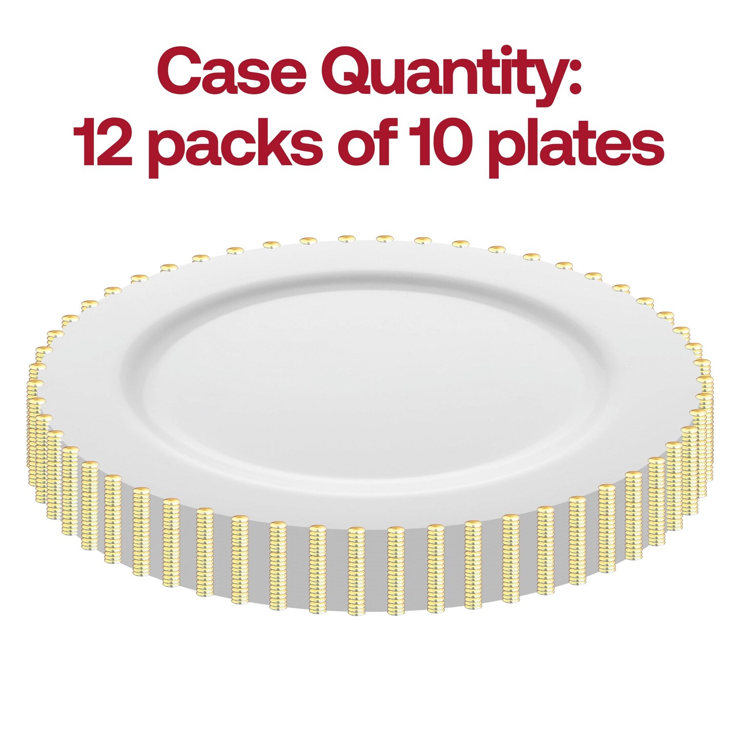 White with Gold Pearl String Round Disposable Plastic Dinner Plates - 10" (120 Plates)