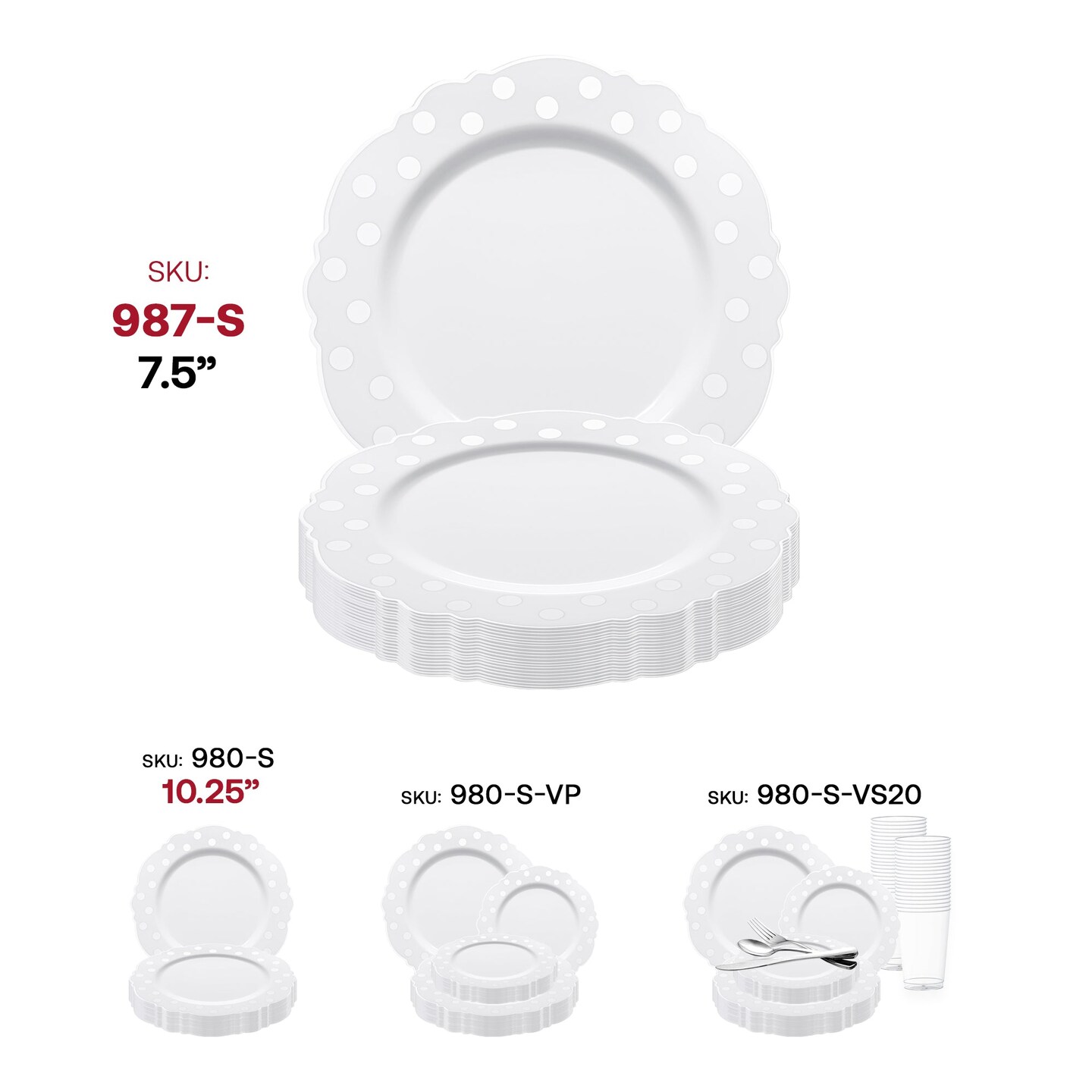 White with Silver Dots Round Blossom Disposable Plastic Salad Plates - 7.5" (120 Plates)