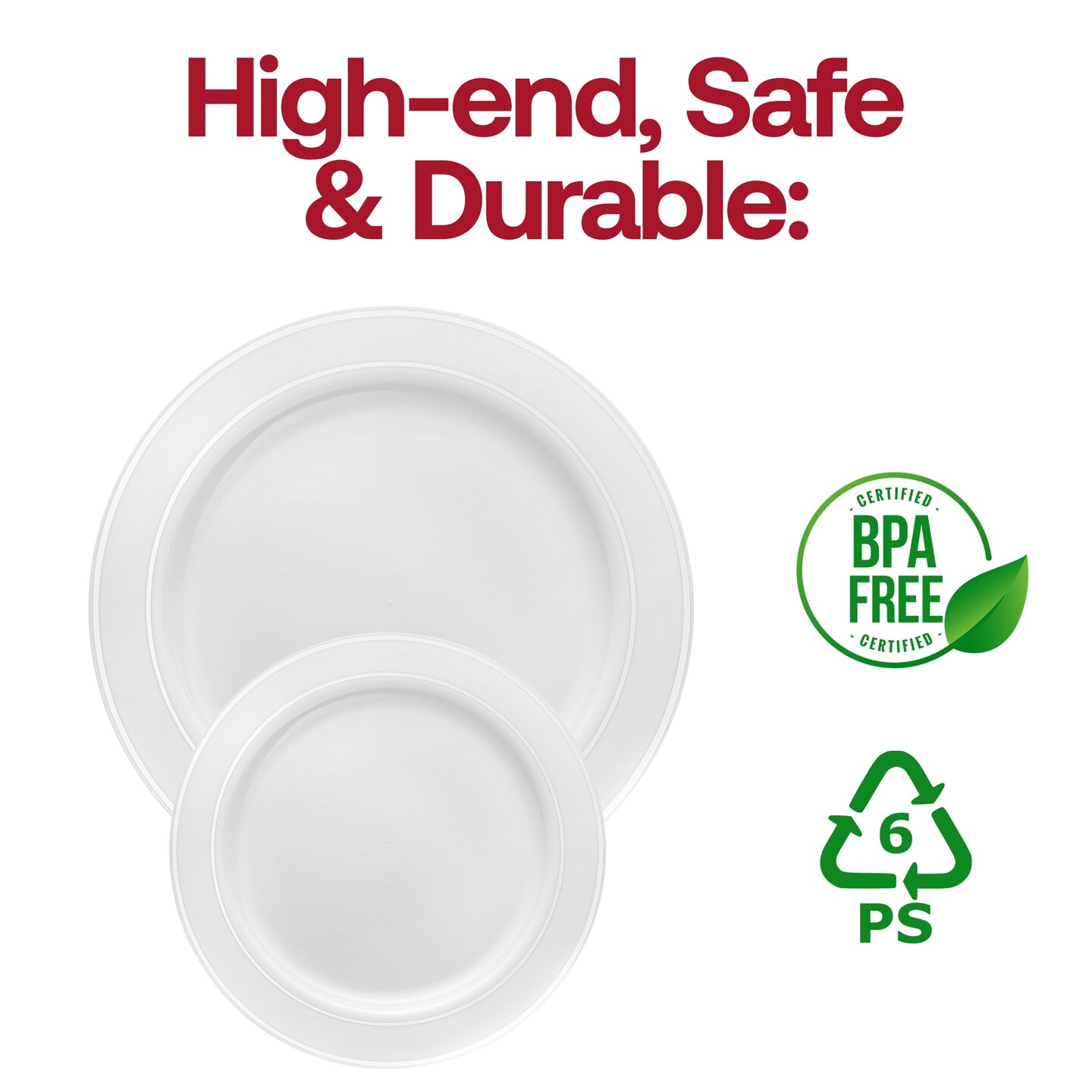 White with Silver Edge Rim Plastic Appetizer/Salad Plates - 7.5" (120 Plates)