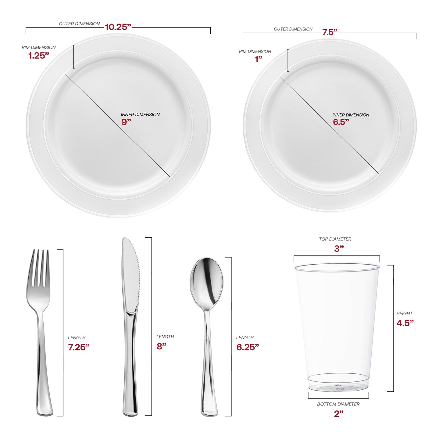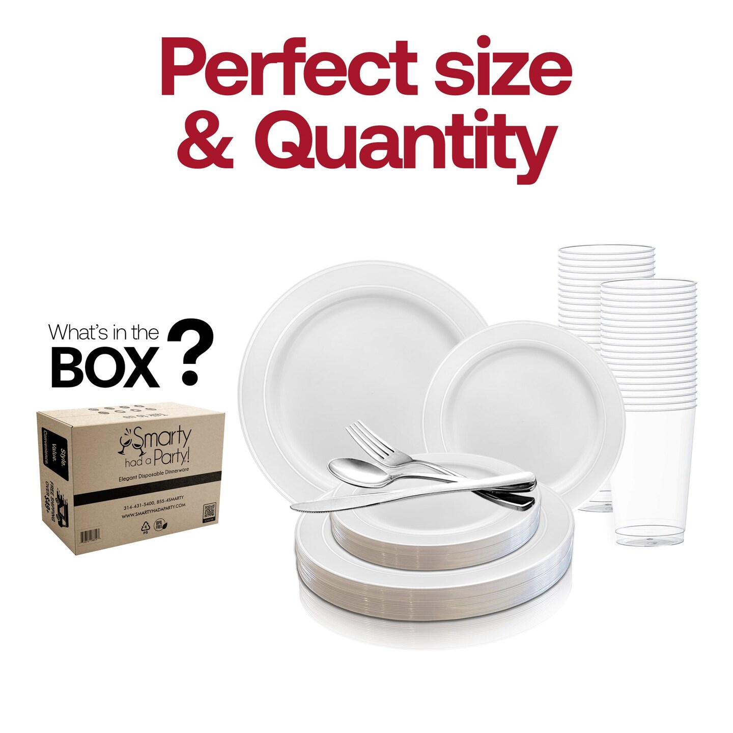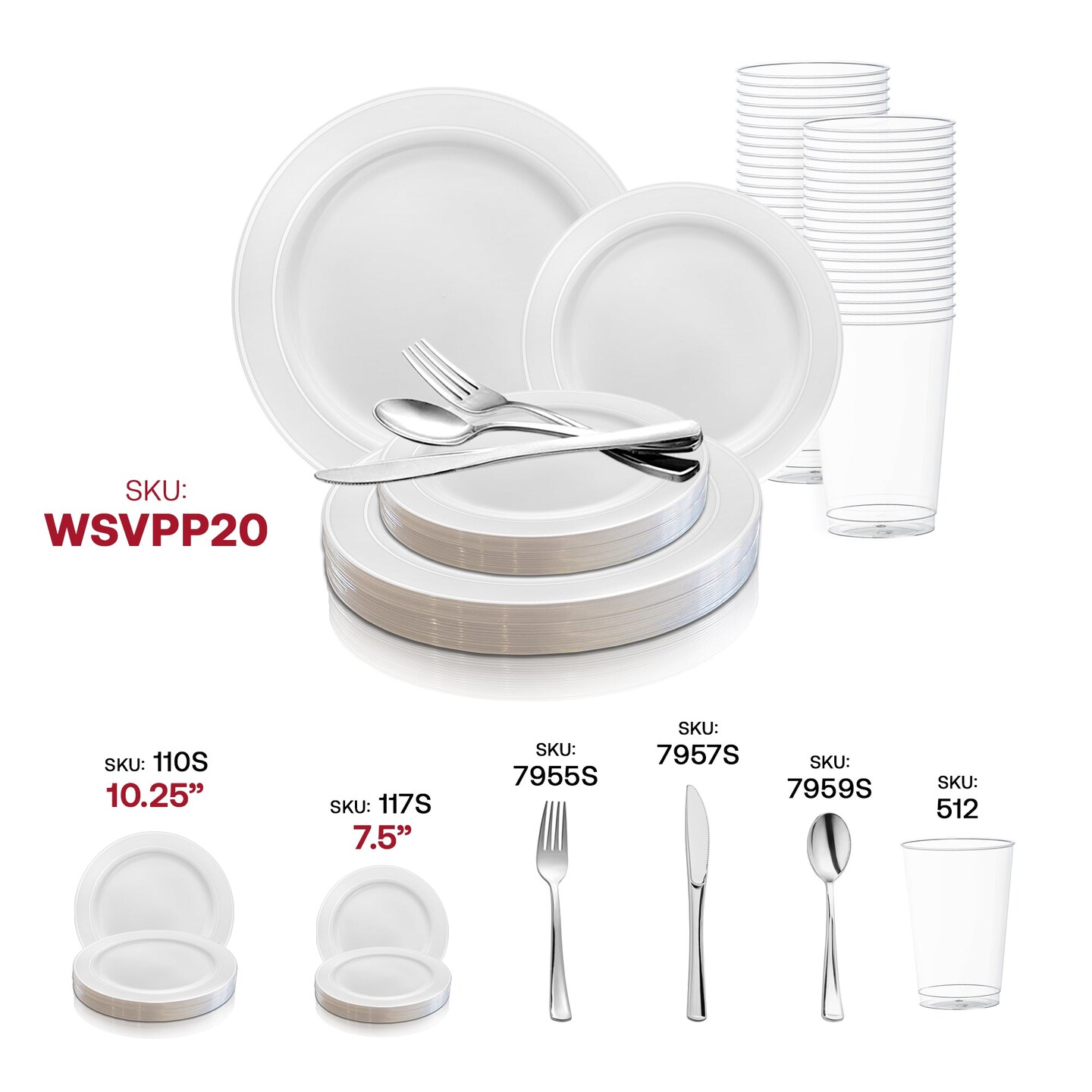 White with Silver Edge Rim Plastic Wedding Value Set (20 Settings)