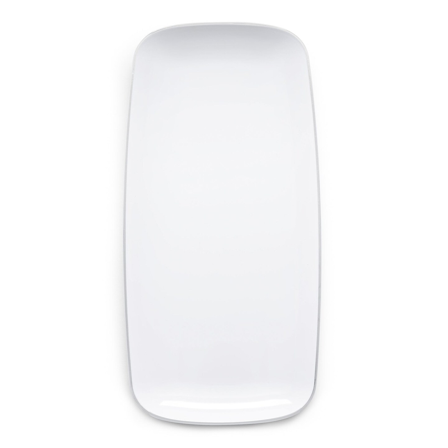 White with Silver Rim Flat Raised Edge Rectangular Disposable Plastic Plates - 10.6" x 5" (120 Plates)
