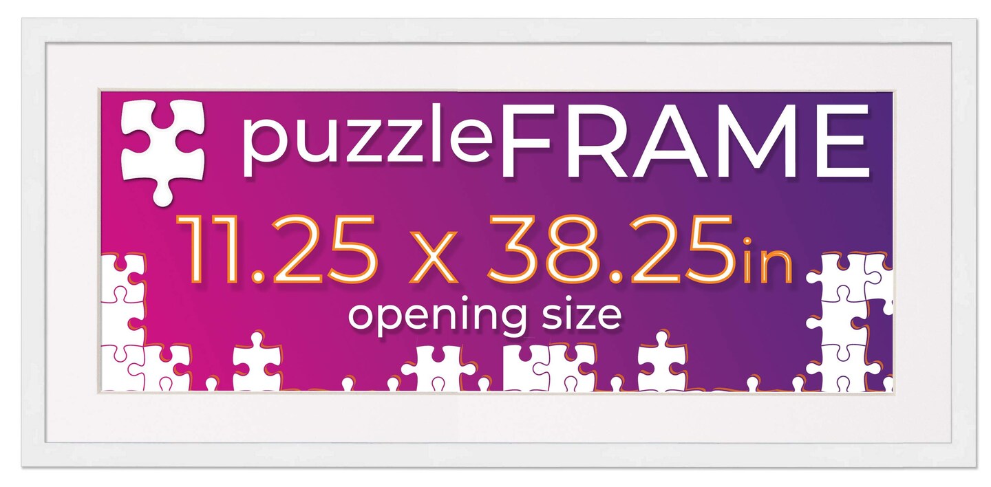 White Wood Puzzle Frame Kit with Glue Sheets, White Mat, Backing, UV Acrylic - Available in 20 Popular Sizes
