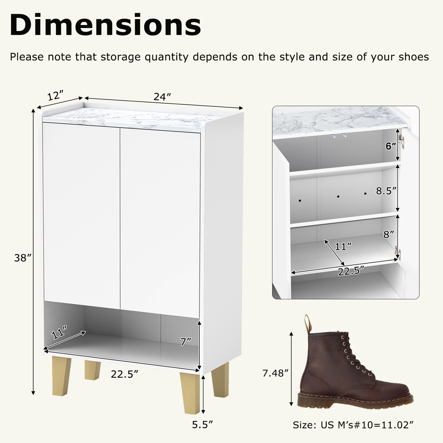 White Wooden 5-Tier Shoe Cabinet with Golden Legs and Flat Tilting Shelves