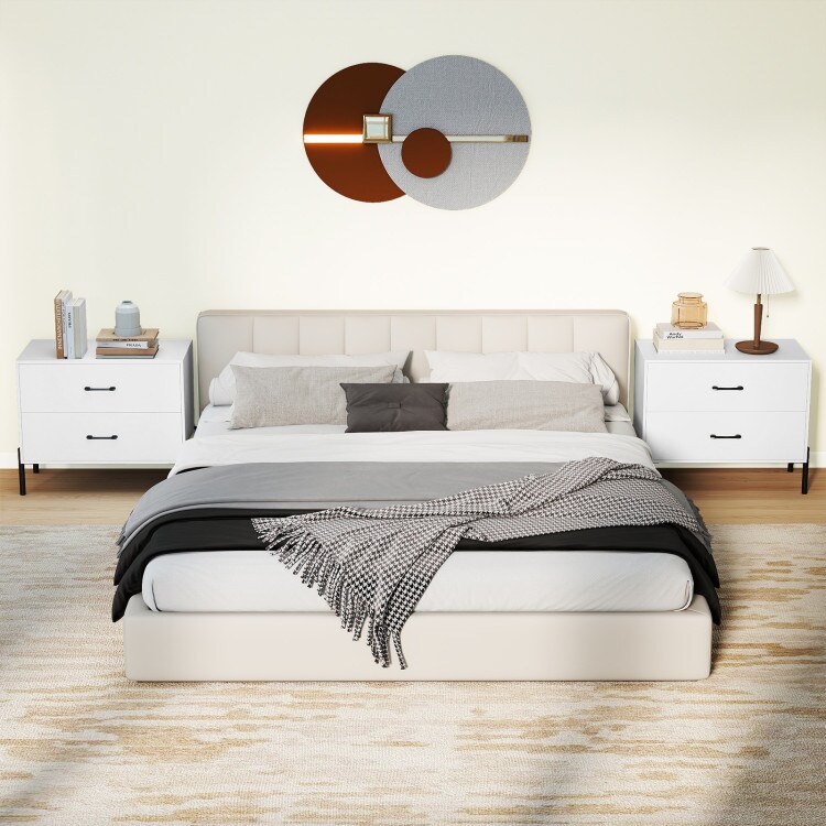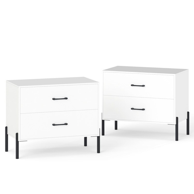White Wooden Nightstand with Metal Legs and Handles 2-Drawer
