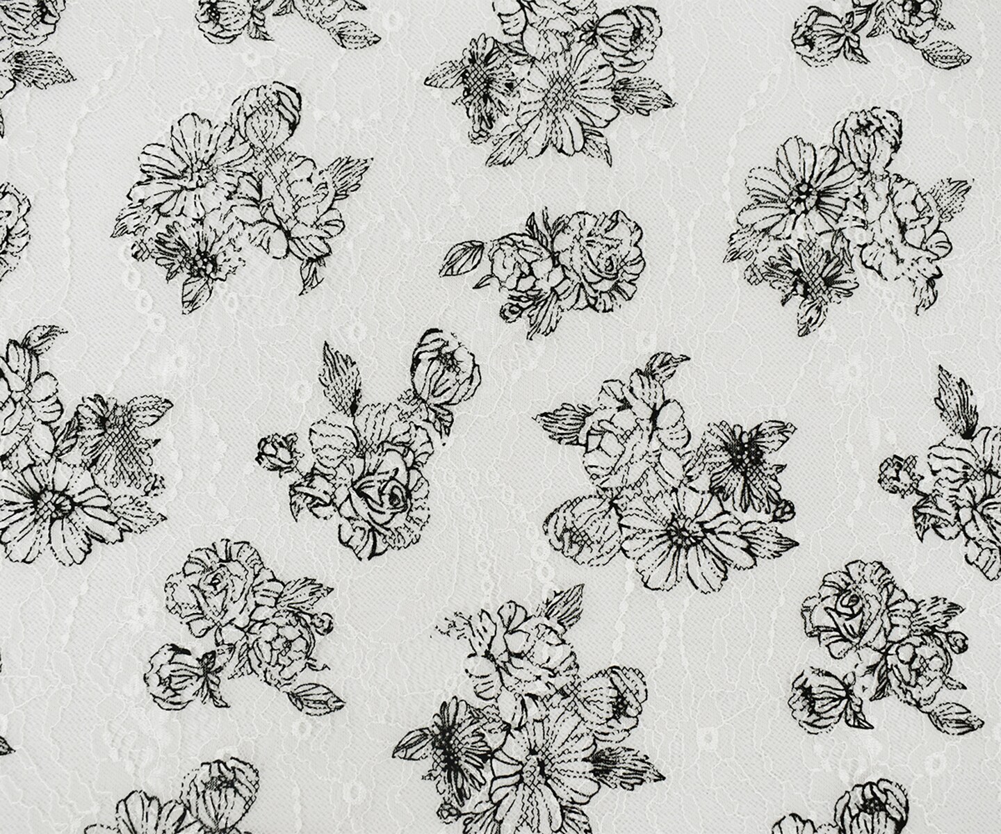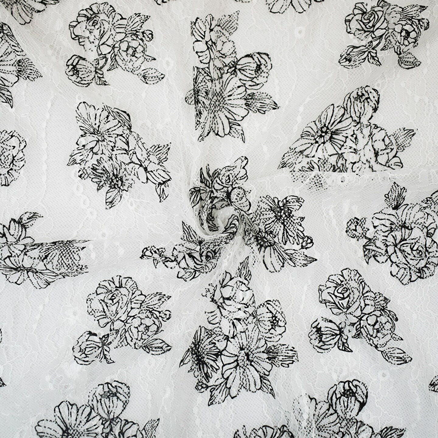 White-Black Nylon Floral Printed Lace Mesh Knit Fabric By the Yard