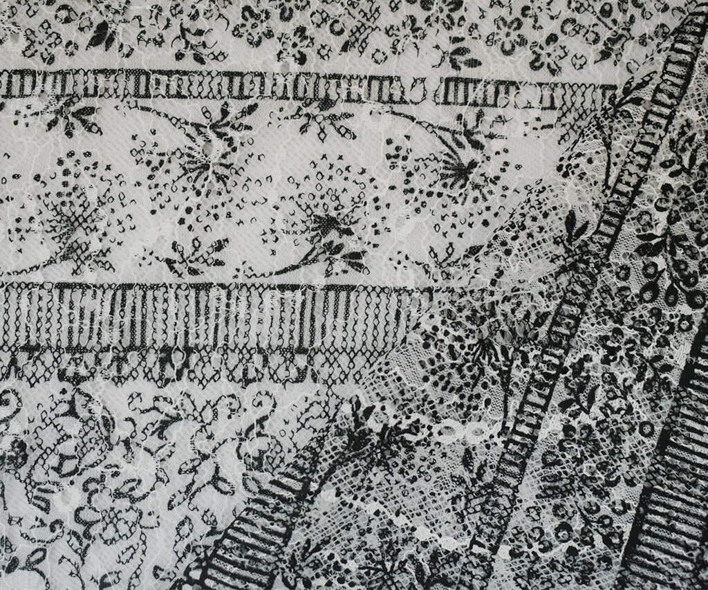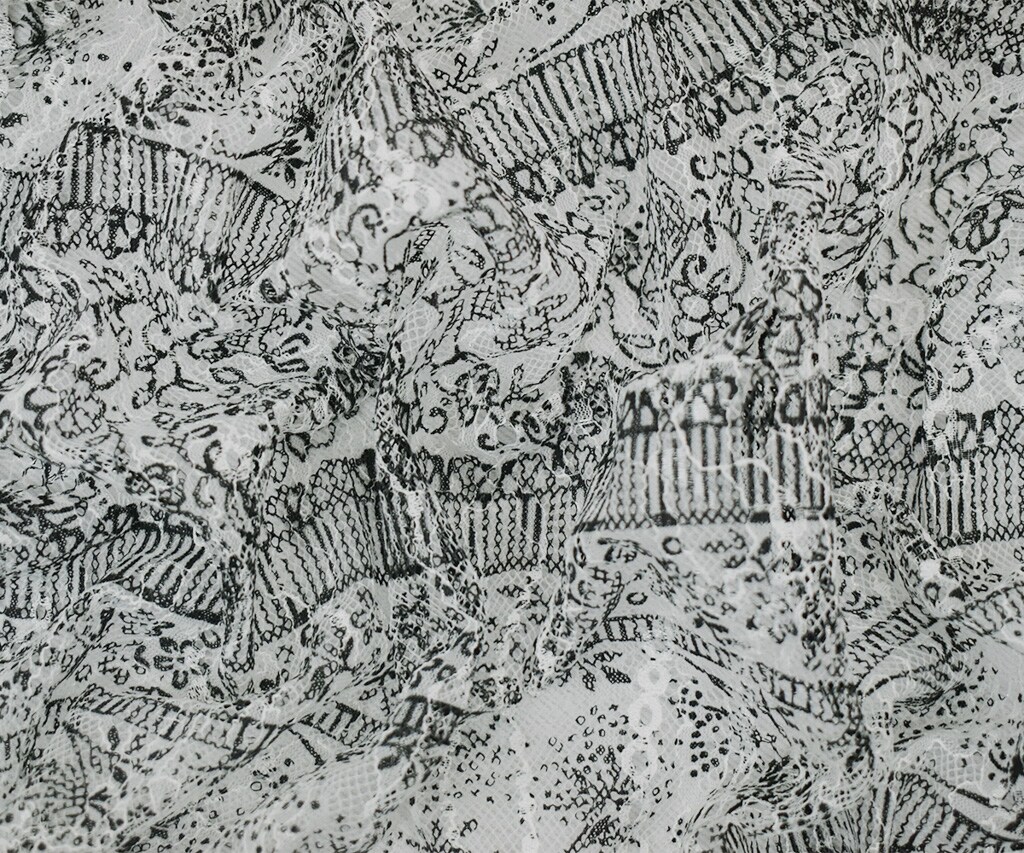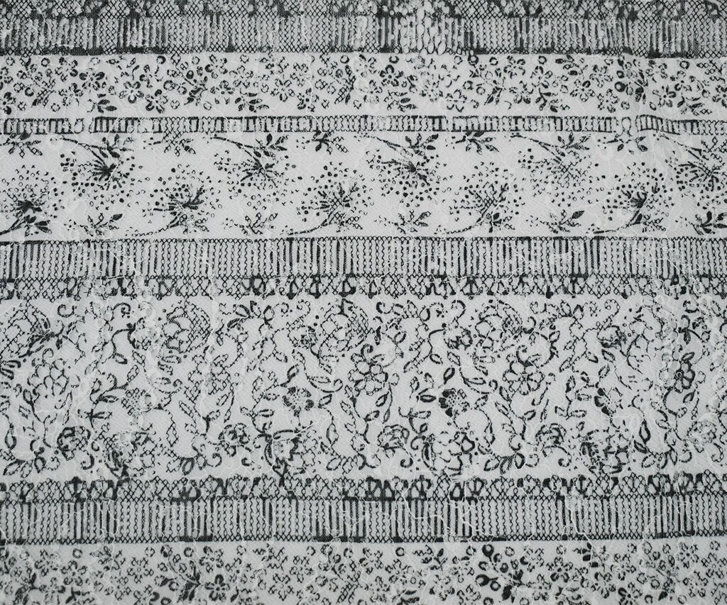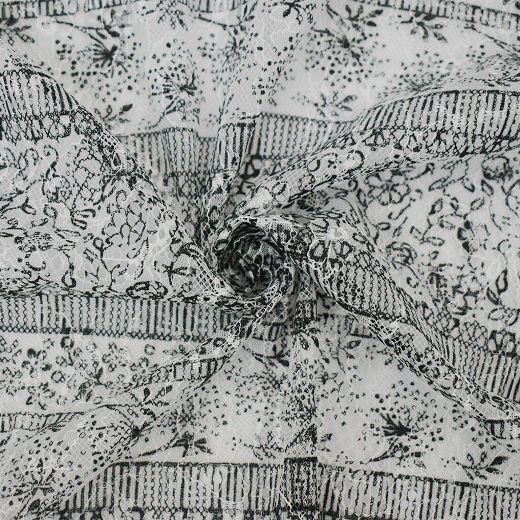 White-Black Nylon RAYON Floral Stripe Printed Lace Mesh Knit Fabric By the Yard
