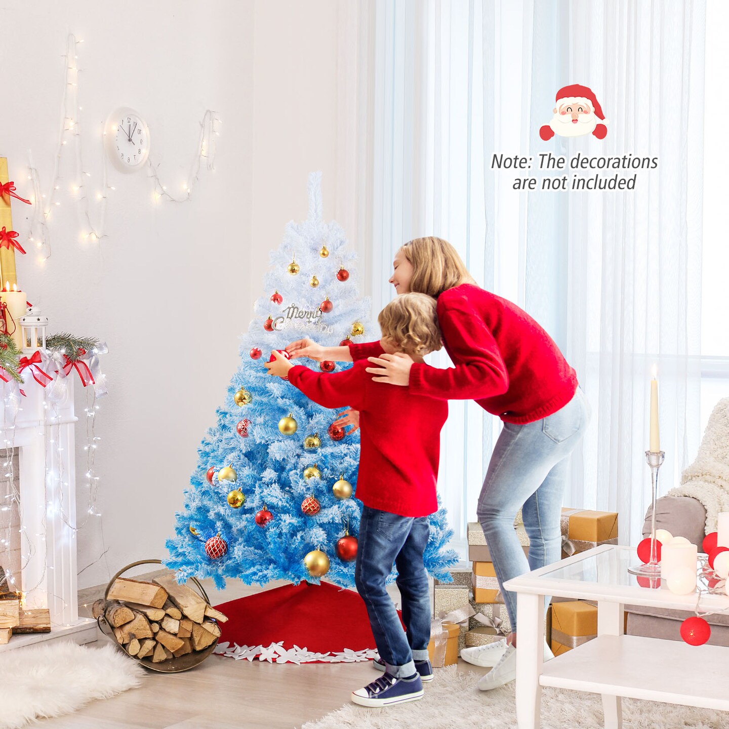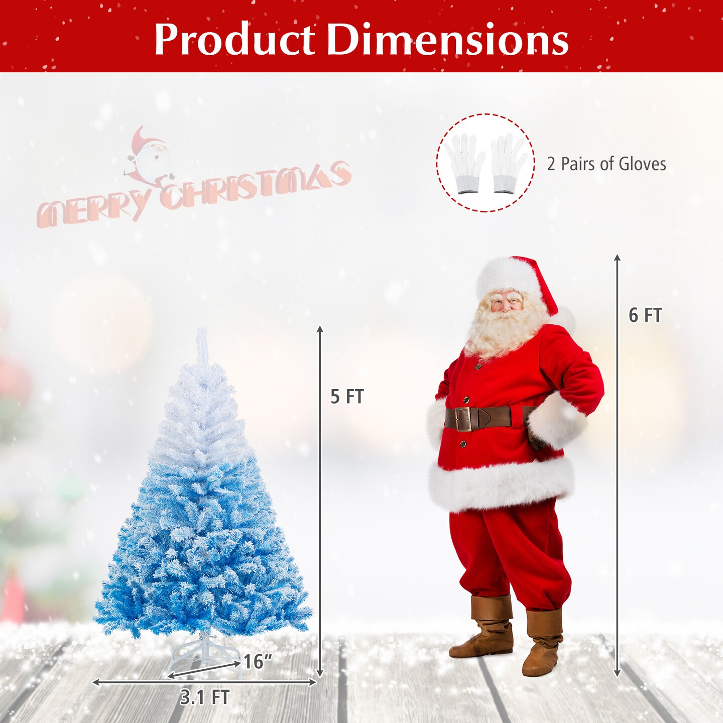 White-Blue PVC Christmas Tree with Flocked Branches and Metal Stand