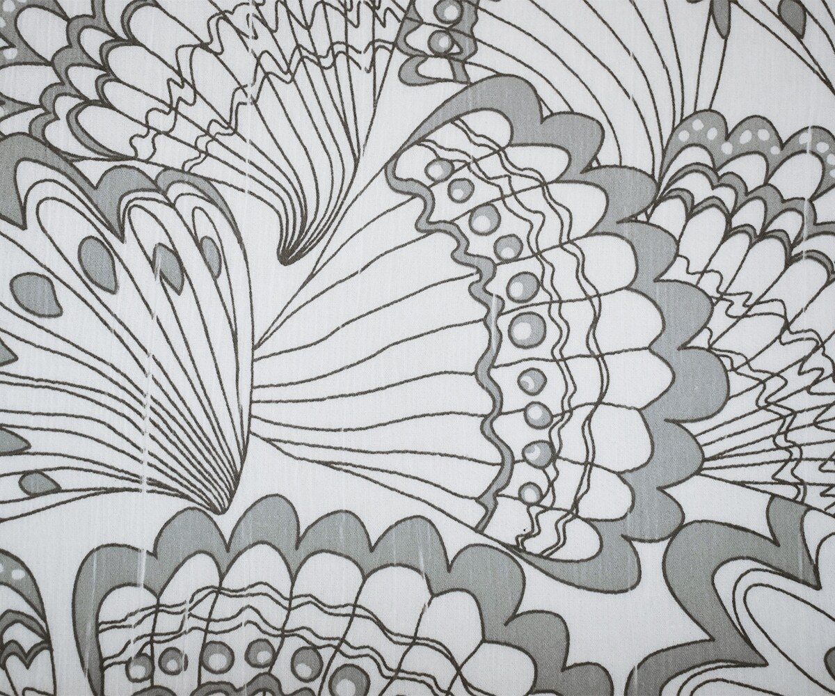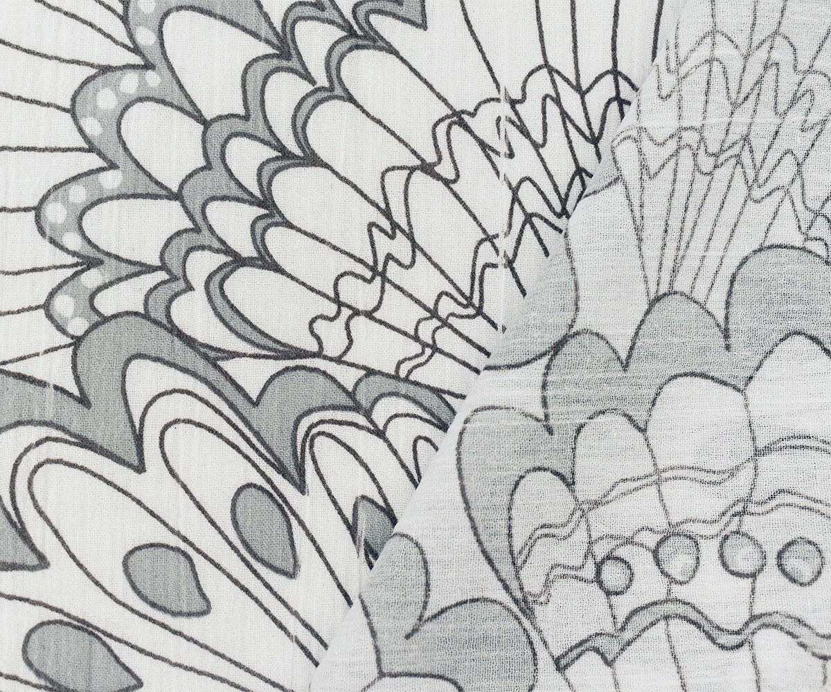 White-Gray Cotton Abstract Feather Printed Crinkled Gauze Woven Fabric By the Yard