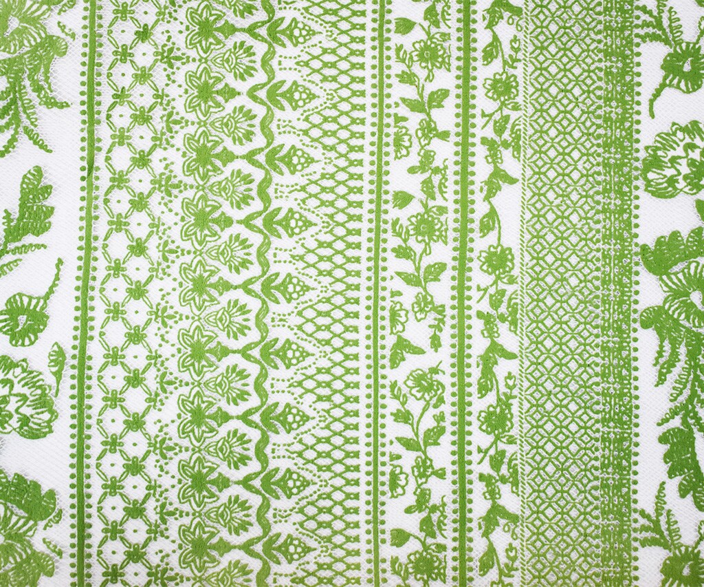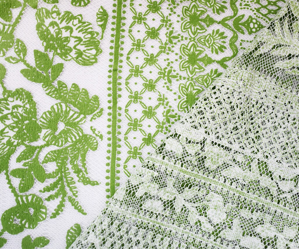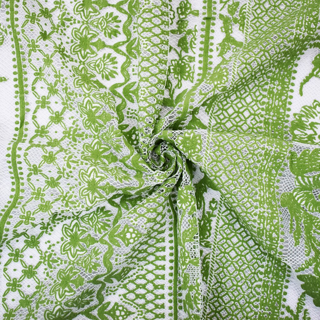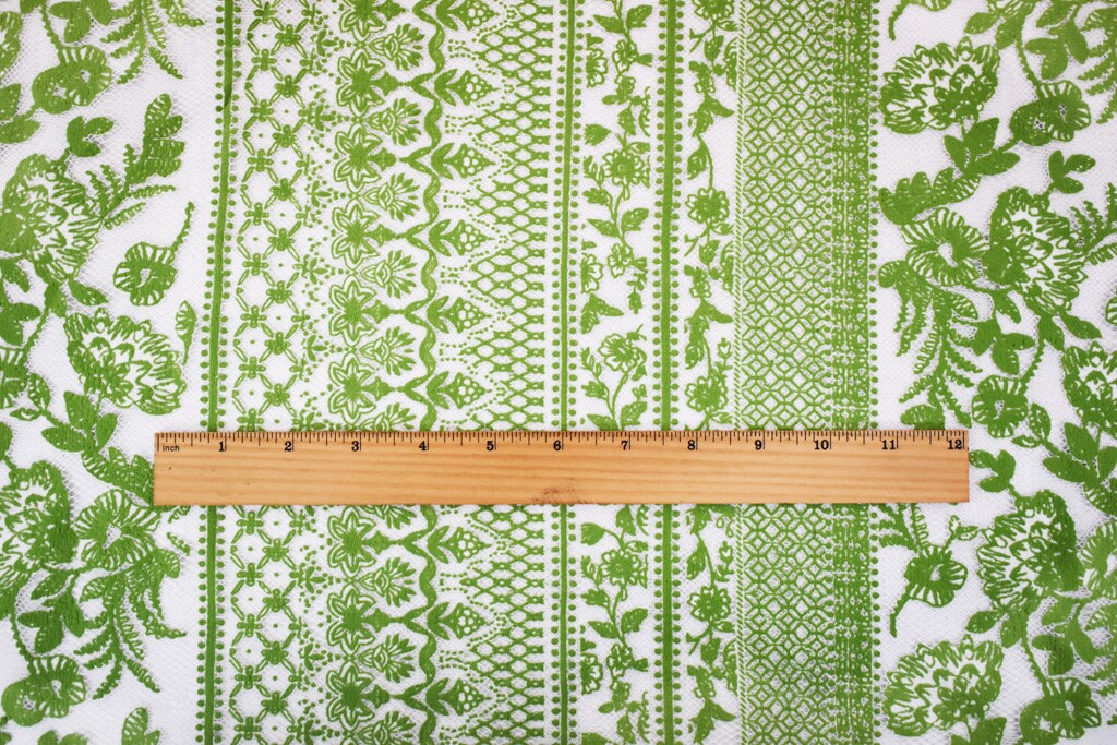 White-Green Nylon Cotton Floral Stripe Printed Mesh Tulle Knit Fabric By the Yard